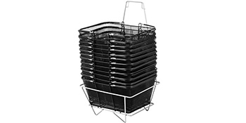 Ručné nákupné koše sú vybavené kvalitným liatinovým stojanom. Pomocou stojana možno na ľubovoľnom mieste zhromaždiť 12 kusov košov a ušetriť tak viac miesta.