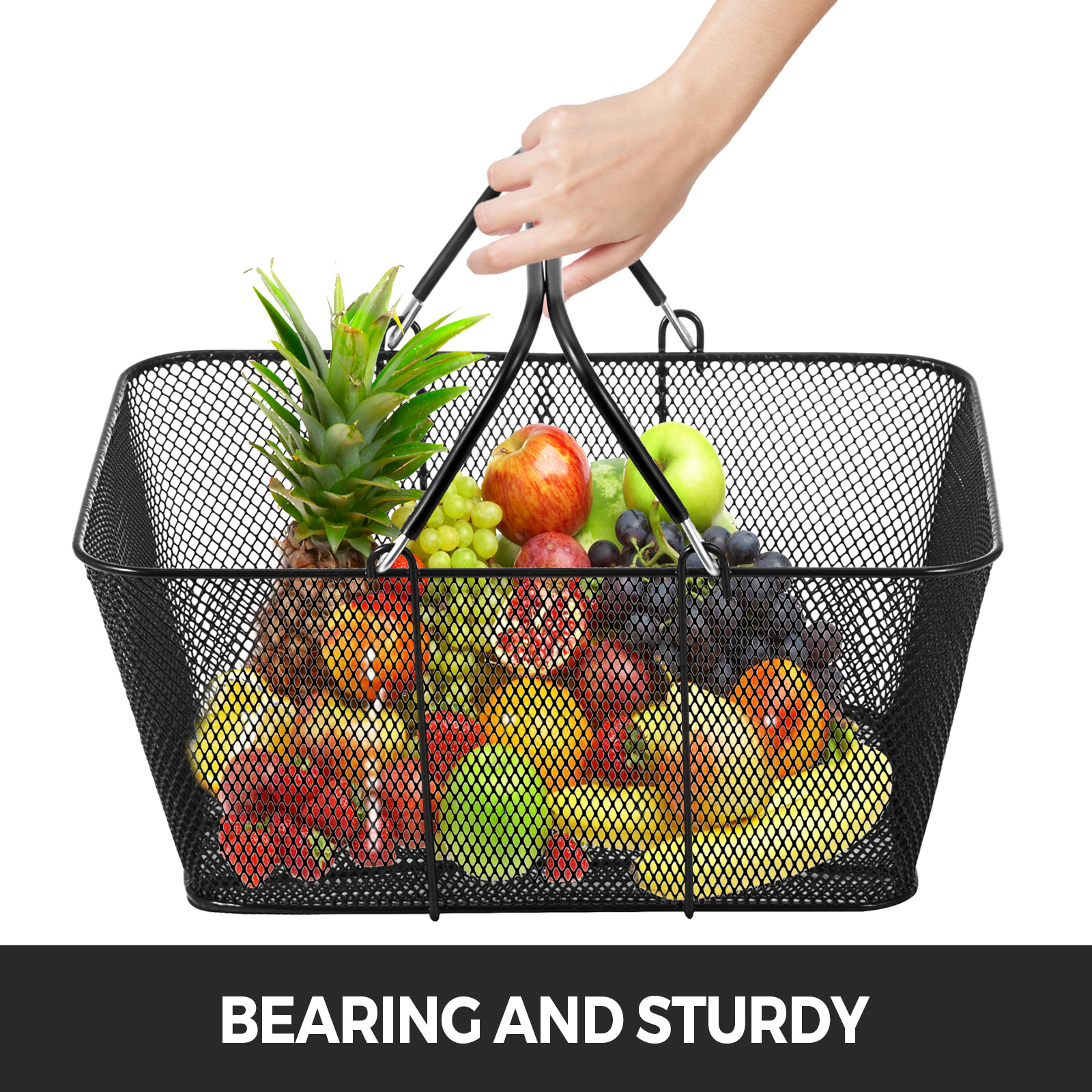 Drôtený nákupný košík, kovový čierny, s rukoväťou, prenosný, 12 ks