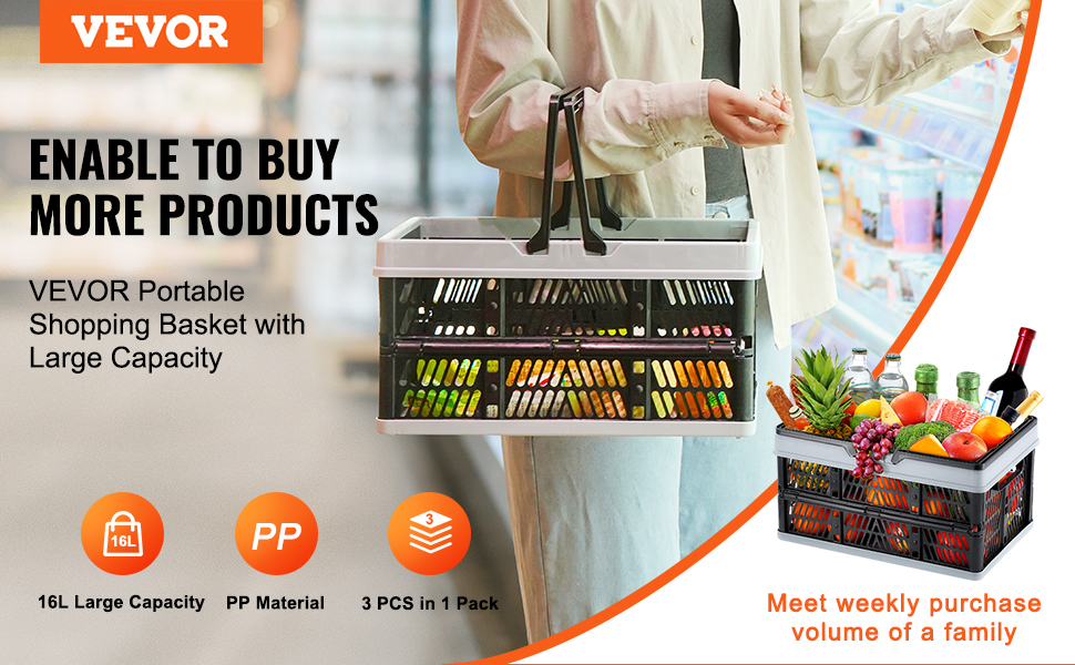 S ručným nákupným košíkom VEVOR dáte zbohom problémom s nakupovaním! Je navrhnutý pre vaše potreby a je dostatočne priestranný, aby zvládol týždenný nákup pre celú rodinu. Už žiadne žonglovanie s taškami ani starosti s miestom - s naším košíkom je všetko vyriešené!
