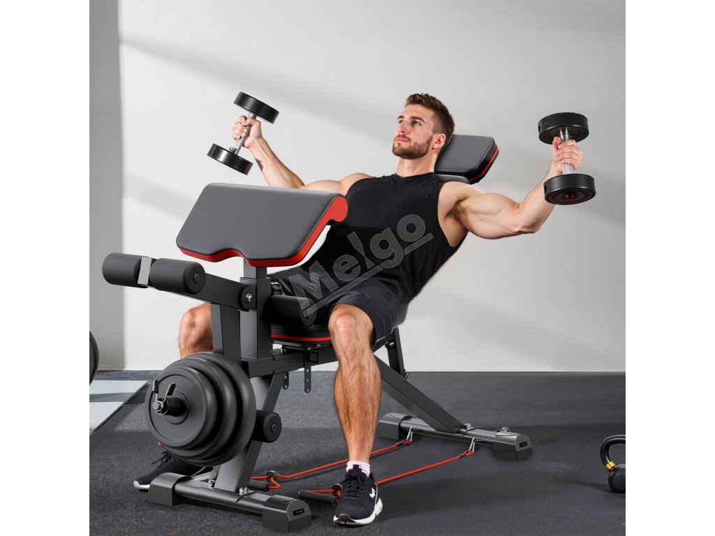 Lavička nastaviteľná 800lbs, s biceps opierkou a nožným extenzorom