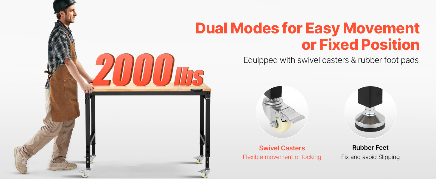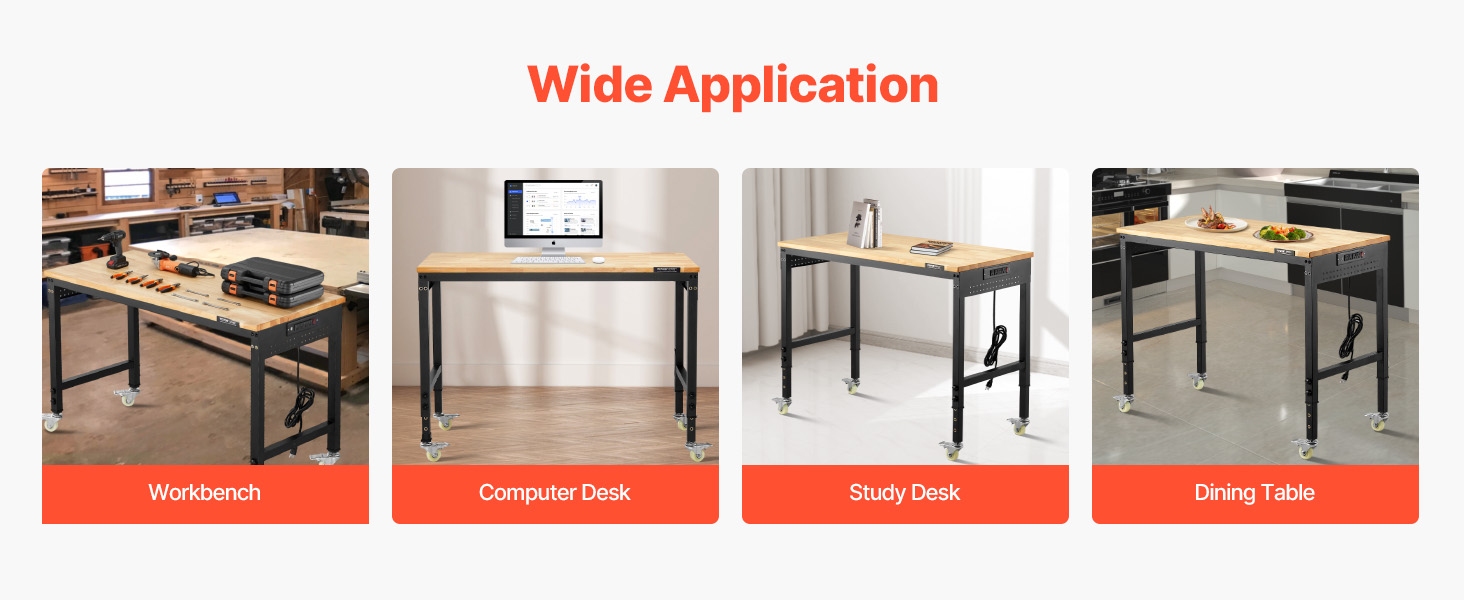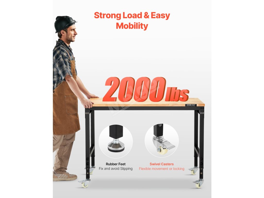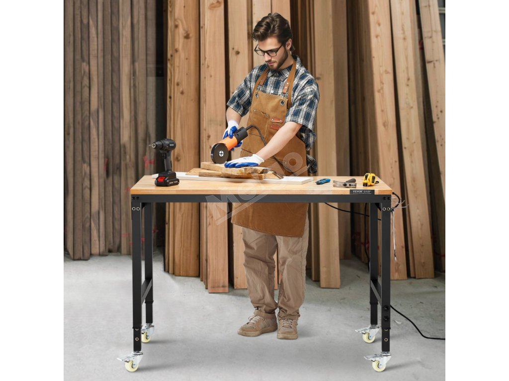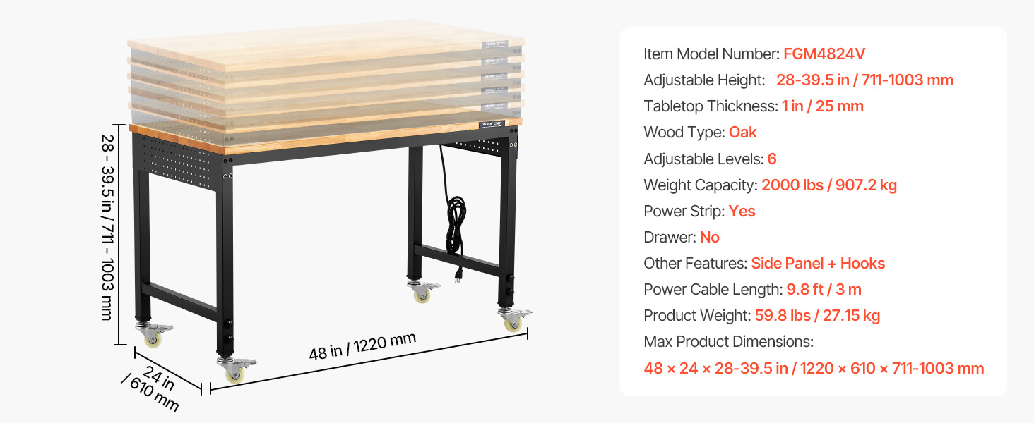 Nájdite si ideálnu výšku vďaka 6 nastaveniam od 28 do 39,5 palca! Dubová doska našej dielenskej lavice s hrúbkou 1 palec je trvanlivá a odolná voči vlhkosti, v kombinácii so silnou uhlíkovou oceľou poskytuje pevnú a spoľahlivú pracovnú plochu.