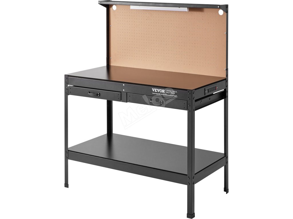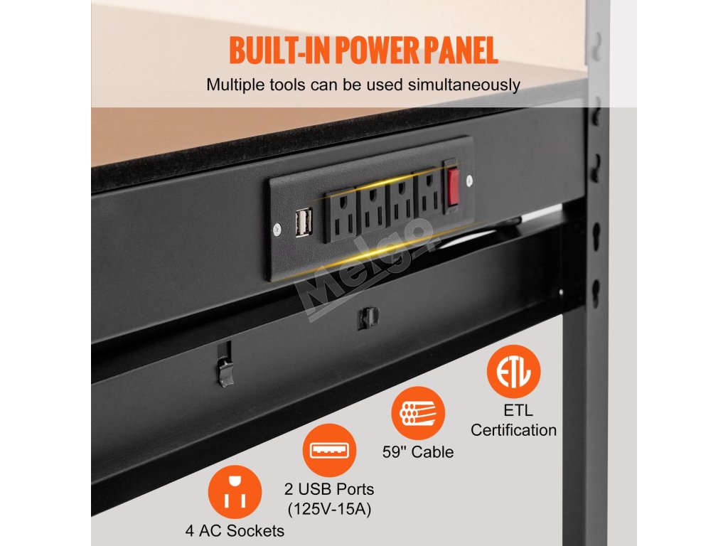 Oceľový pracovný stôl do garáže nosnosť 220lbs doska 0.47" 4×ac 2×usb
