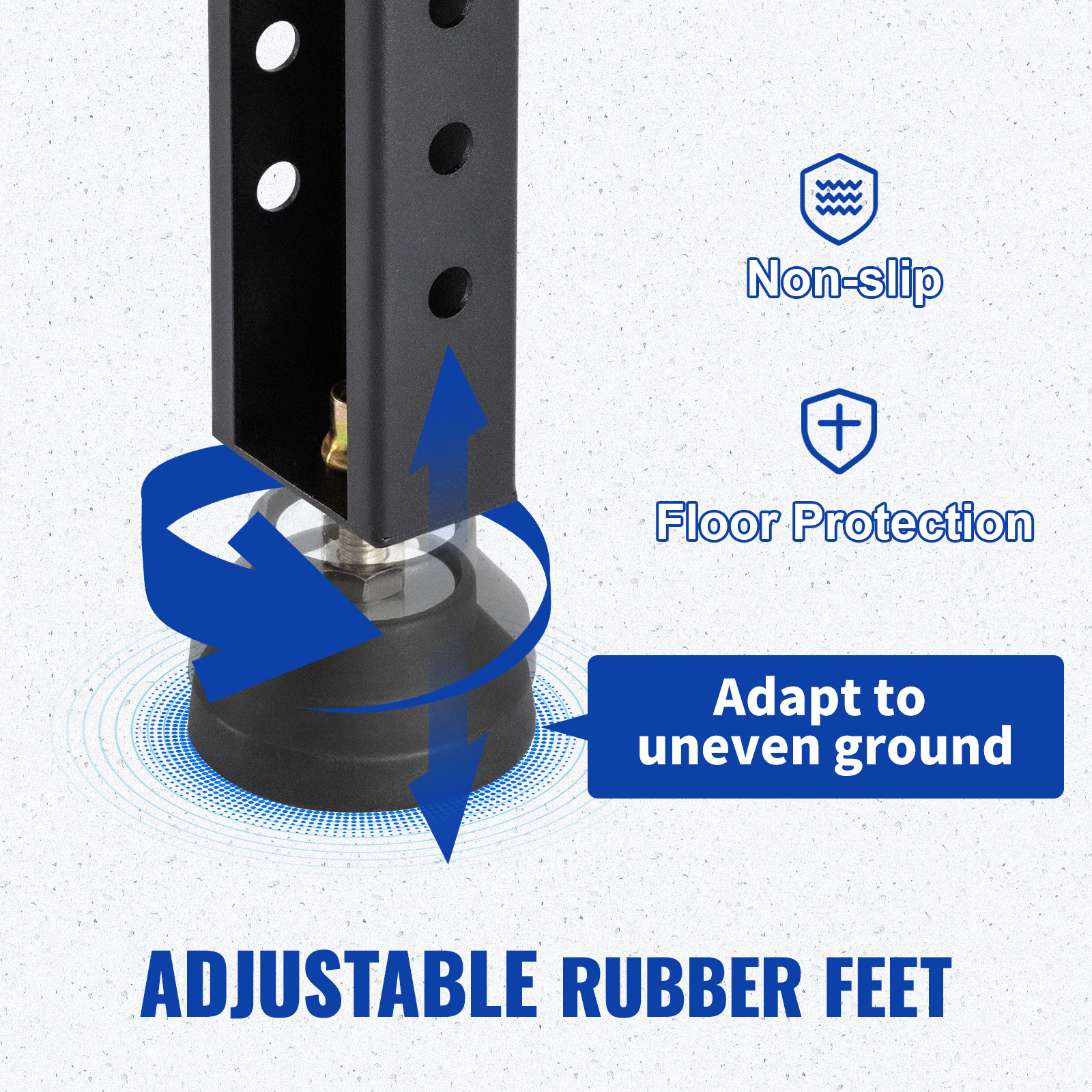 Štyri vyrovnávacie nožičky sa dokážu prispôsobiť nerovným povrchom. Mäkký gumový materiál je šetrnejší k podlahe. Flexibilné a jemné nastavenie výšky minimalizuje možnosť pošmyknutia a otrasov.