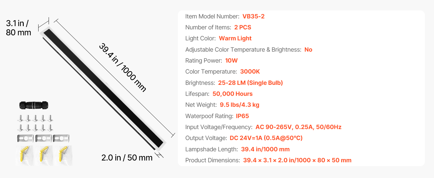 | Rozmery výrobku | 39.4 x 3,1 x 2,0 in/1000 x 80 x 50 mm |