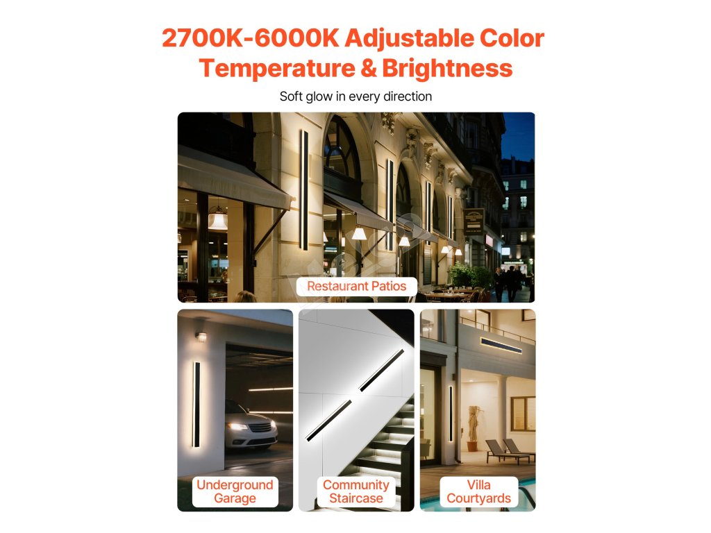 Naše vonkajšie nástenné svetlo má nastaviteľnú teplotu farieb 2700 K - 6000 K a teplé až studené svetlo s možnosťou nastavenia širokej plochy. Osvetlenie širokého spektra priestorov v garážach, na schodiskách a pod. Vytvára individuálnu atmosféru a zároveň spĺňa potreby osvetlenia obytných alebo komerčných priestorov.