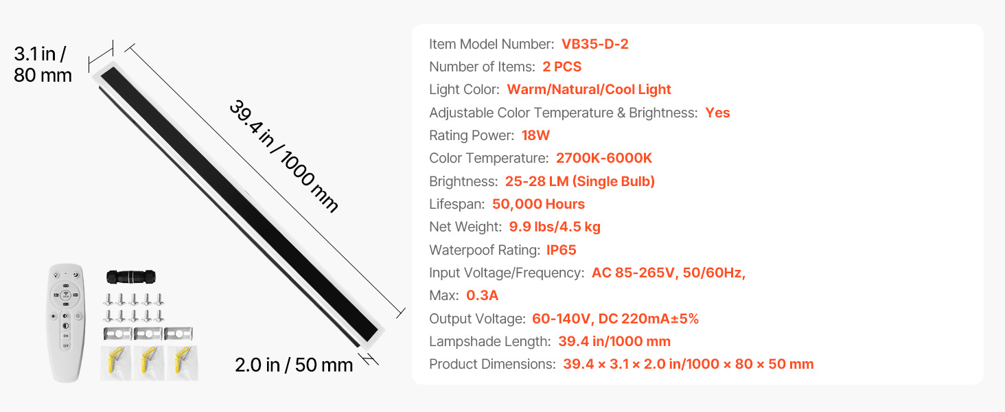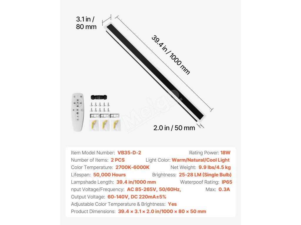 | Rozmery výrobku | 39.4 x 3,1 x 2,0 in/1000 x 80 x 50 mm |