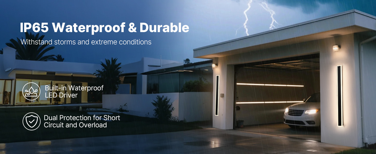 Vďaka vodotesnosti IP65 má naše vonkajšie nástenné svietidlo vynikajúce vodotesné a vzduchotesné vlastnosti, ktoré odolávajú extrémnym poveternostným podmienkam, ako sú búrky a silný vietor. Zabudovaný vodotesný LED ovládač je vybavený ochranou proti skratu a preťaženiu, čo zaručuje spoľahlivú prevádzku.
