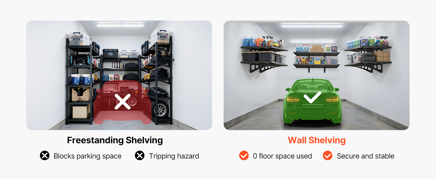 Tieto plávajúce police do garáže zdvíhajú úložný priestor z podlahy na stenu. Vaša garáž bude okamžite pôsobiť otvorenejšie, organizovanejšie a bude sa v nej ľahšie pohybovať, keďže neporiadok bude konečne preč.