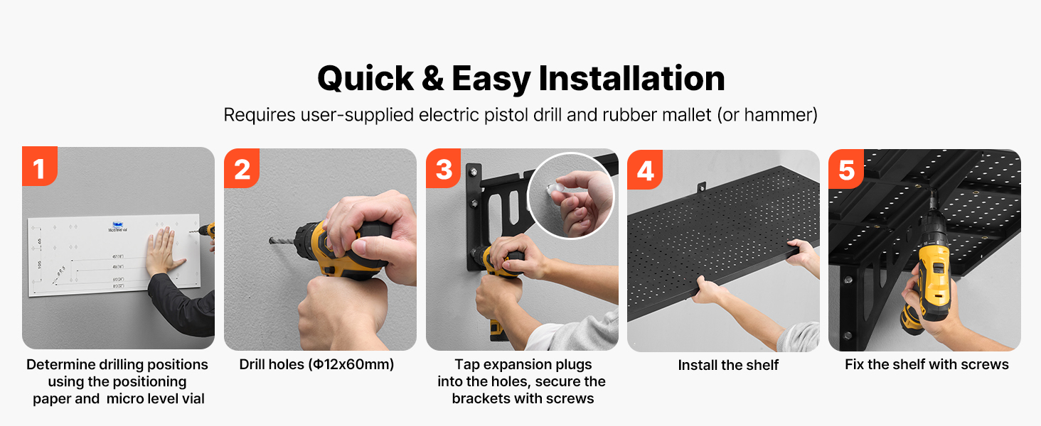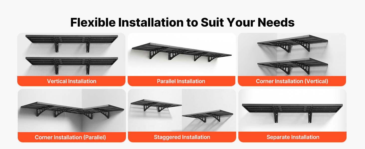 Tieto nástenné police do garáže podporujú vertikálnu, paralelnú, rohovú, stupňovitú alebo jednopolicovú inštaláciu. Môžete si vybrať rozloženie, ktoré vyhovuje vašim potrebám skladovania, a maximálne využiť každú časť steny.