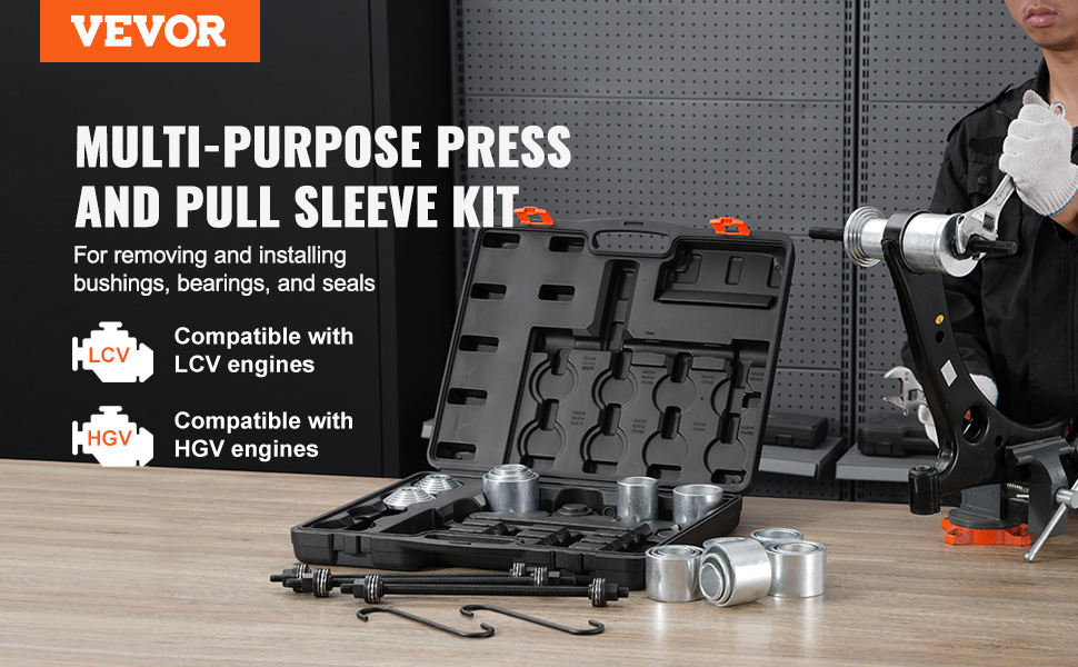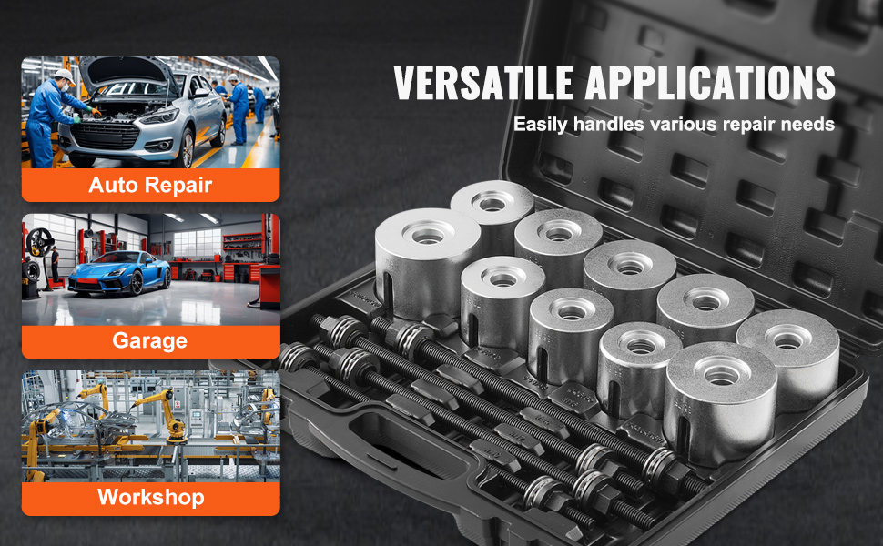 Súprava lisovacích a sťahovacích puzdier sa široko používa v automobilových opravovniach, garážach a mechanických dielňach, kde bez námahy rieši rôzne problémy údržby a zvyšuje efektivitu práce.