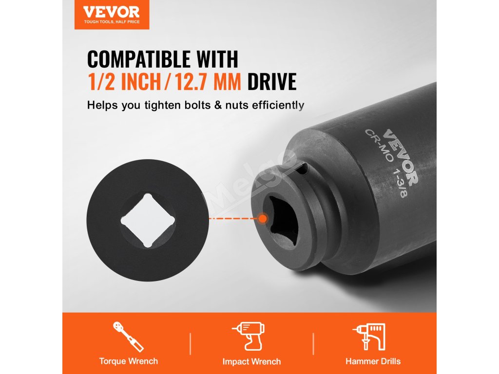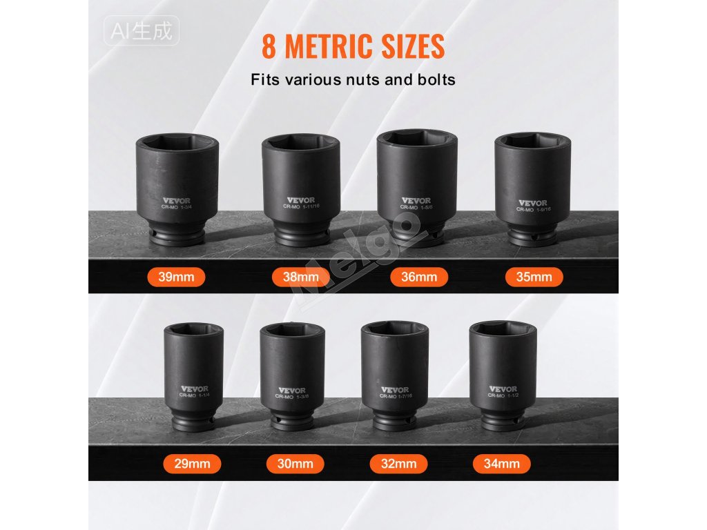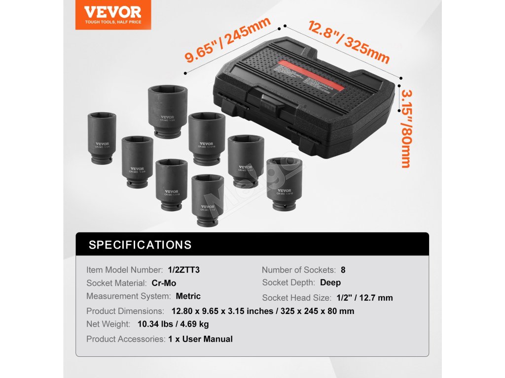 VEVOR Sada nástrčných hlavíc 1/2" s hlbokým 12-bodovým pohonom, 8 dielov