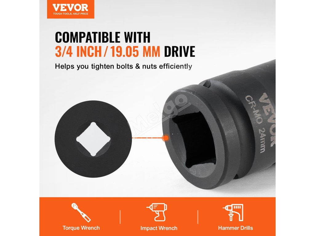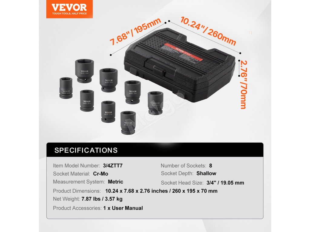 VEVOR Sada nástrčných hlavíc 3/4" s pohonom 6-bodovým 8-dielna
