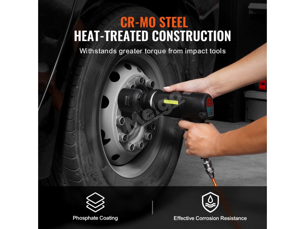 Súprava nástrčných hlavíc na matice náprav je vyrobená z vysokopevnostnej ocele CR-MO odolnej voči korózii a je konštruovaná tak, aby vydržala. Vysokokontrastné označenia veľkostí umožňujú rýchlu identifikáciu, zatiaľ čo 6-bodový dizajn bezpečne uchopí matice, aby sa zabránilo ich skĺznutiu alebo poškodeniu.