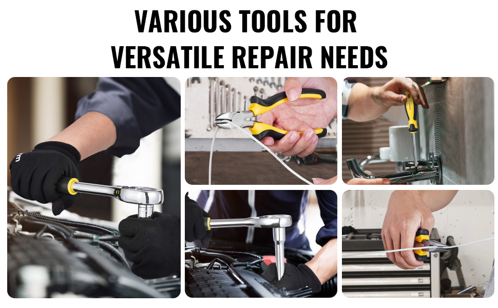 Súprava náradia sa dodáva s ihlovými kliešťami a diagonálnymi kliešťami, ktoré poskytujú vynikajúce rezacie schopnosti na strihanie kovu, drôtov a ďalších materiálov. Nastaviteľné kliešte na vodné čerpadlo sa rýchlo zaistia a bezpečne uchopia predmety s ľahkosťou.
