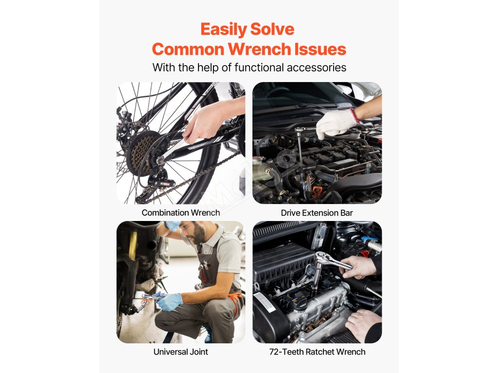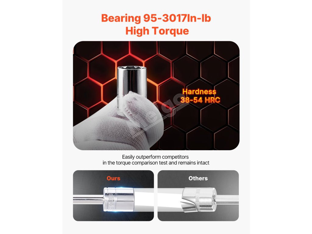 Táto súprava náradia je vyrobená z prvotriednych materiálov a ľahko zvláda krútiaci moment od 95 do 3017 in-lb. Či už pracujete na vozidlách alebo modernizácii domu, táto sada nástrčiek je spoľahlivým spoločníkom pri náročných úlohách.