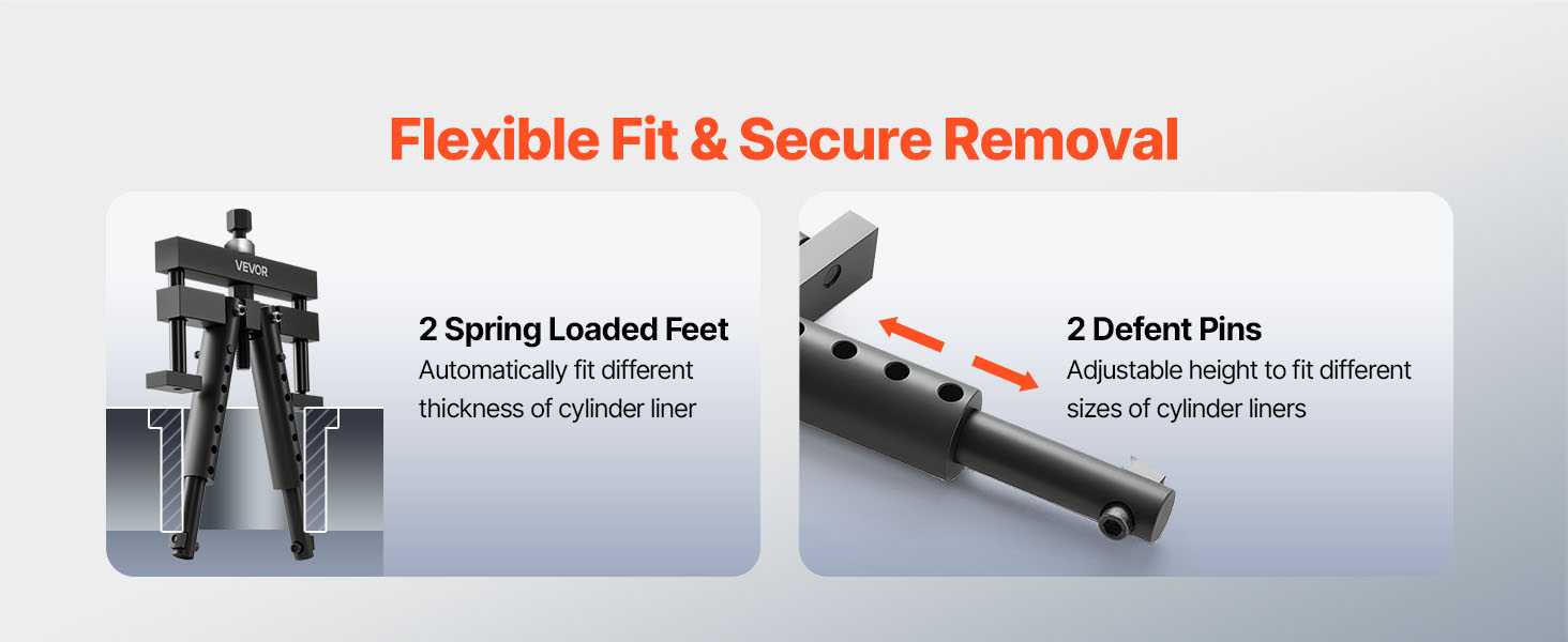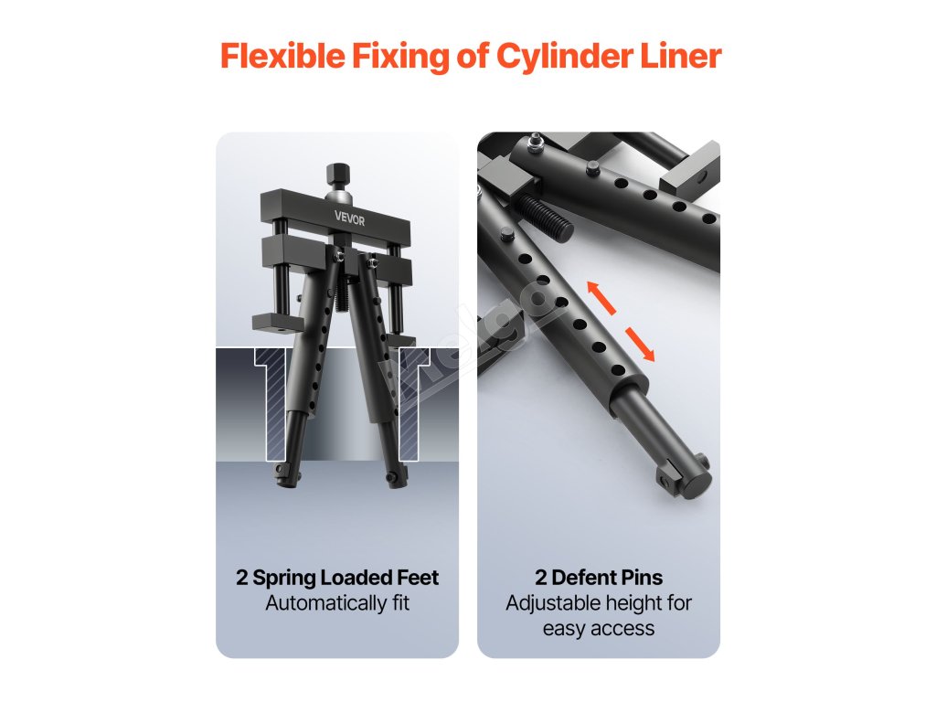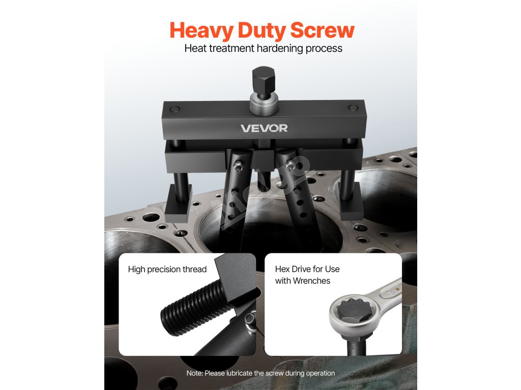 Náš sťahovák vložiek valcov je ideálny pre nákladné vozidlá a stavebné motory. Odpružené a nastaviteľné nohy bezpečne uchopia vložky rôznych veľkostí - bez poškodenia bloku motora. Je vyrobený z vysokopevnostnej ocele pre dlhodobú životnosť. Poznámka: Pred použitím namažte skrutku.