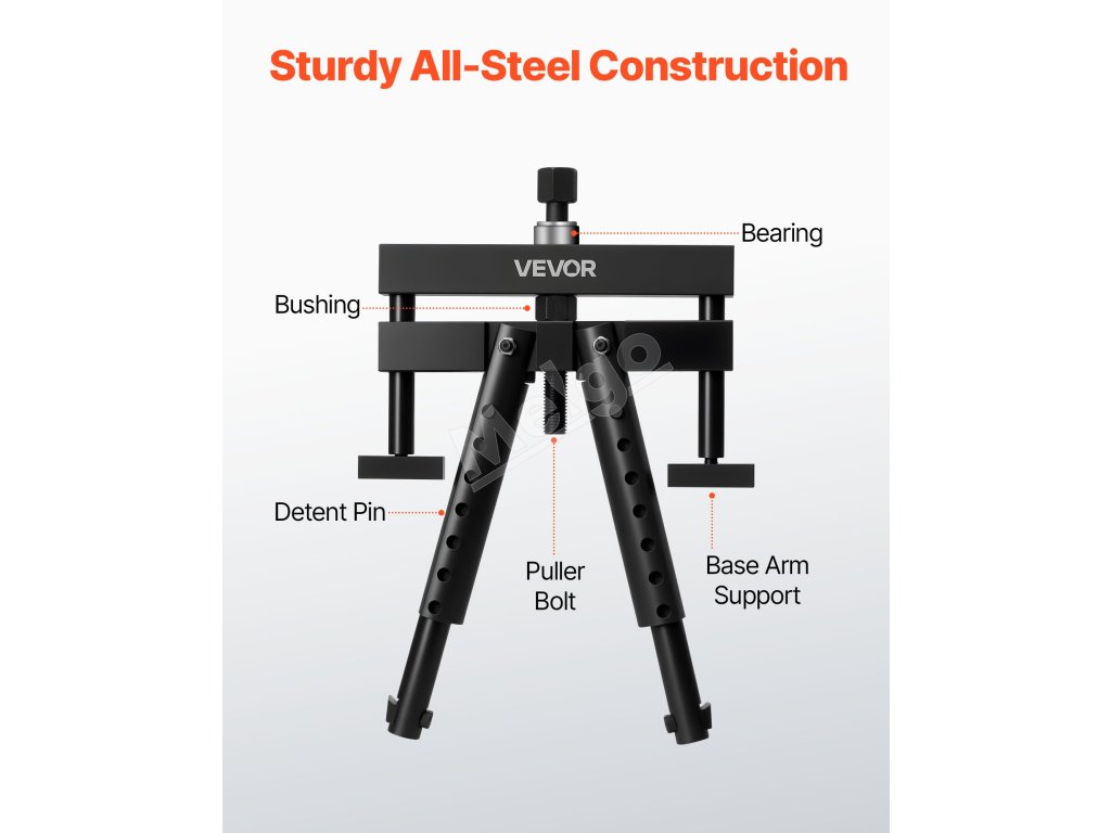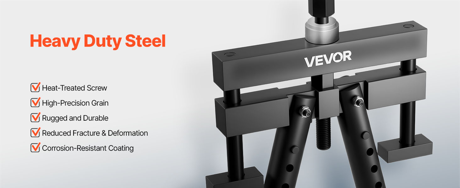 Skrutka vyťahovača vložiek motora je tepelne spracovaná pre väčšiu pevnosť, zatiaľ čo všetky časti sú vyrobené z prvotriednej ocele pre dlhodobú životnosť a odolnosť voči opotrebovaniu.