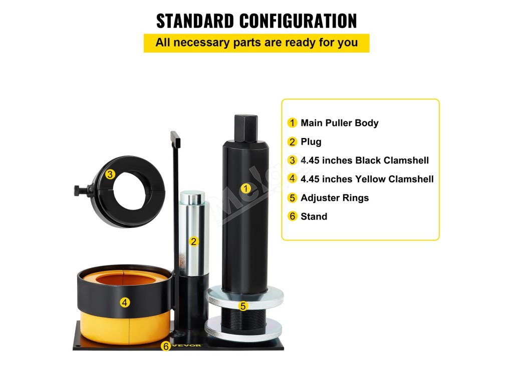 Sťahovák ložiska pastorka nosiča sa dodáva s potrebnými dielmi, ktoré potrebujete, vrátane hlavného telesa sťahováka, zátky, stredovej skrutky, 2 mušlí, poistného krúžku a nastavovacích krúžkov.