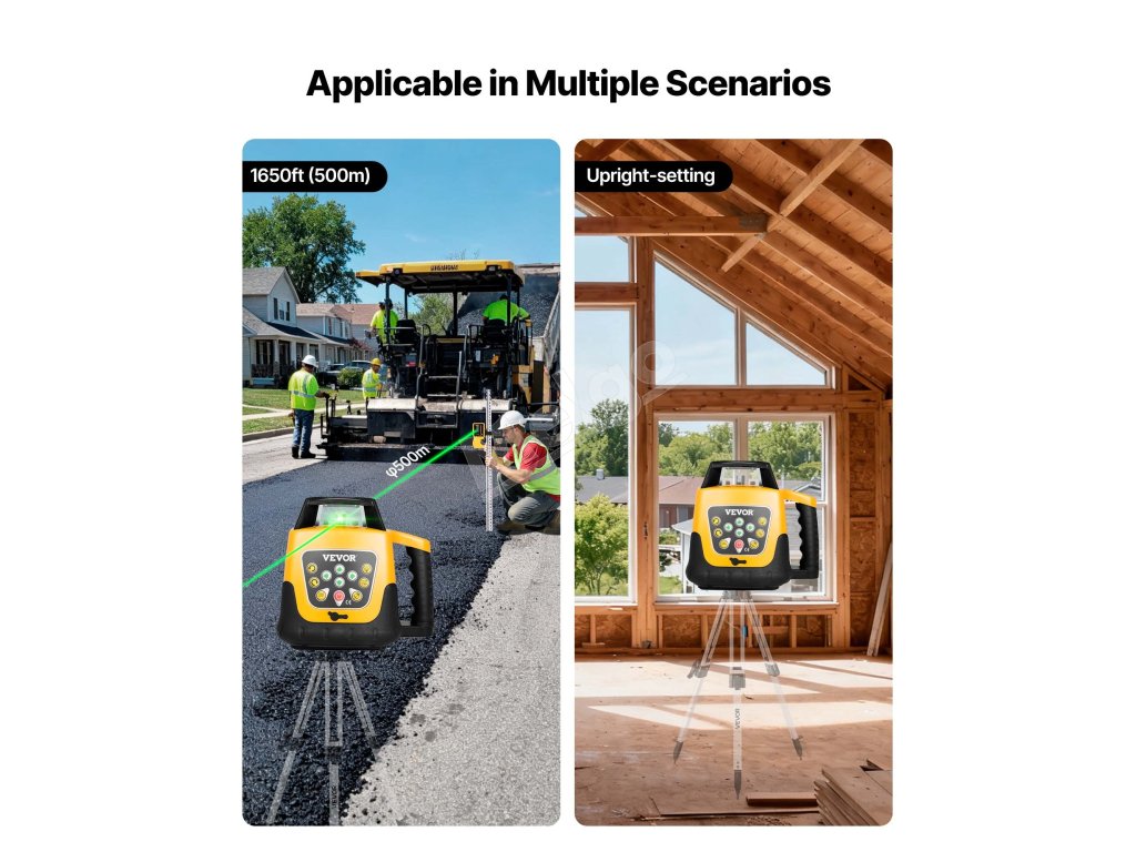 V spojení s laserovým detektorom a diaľkovým ovládaním dosahuje maximálna vzdialenosť na diaľku 65 stôp, podporuje vertikálnu aj horizontálnu montáž pre všestranné použitie laserového vodovážneho náradia.