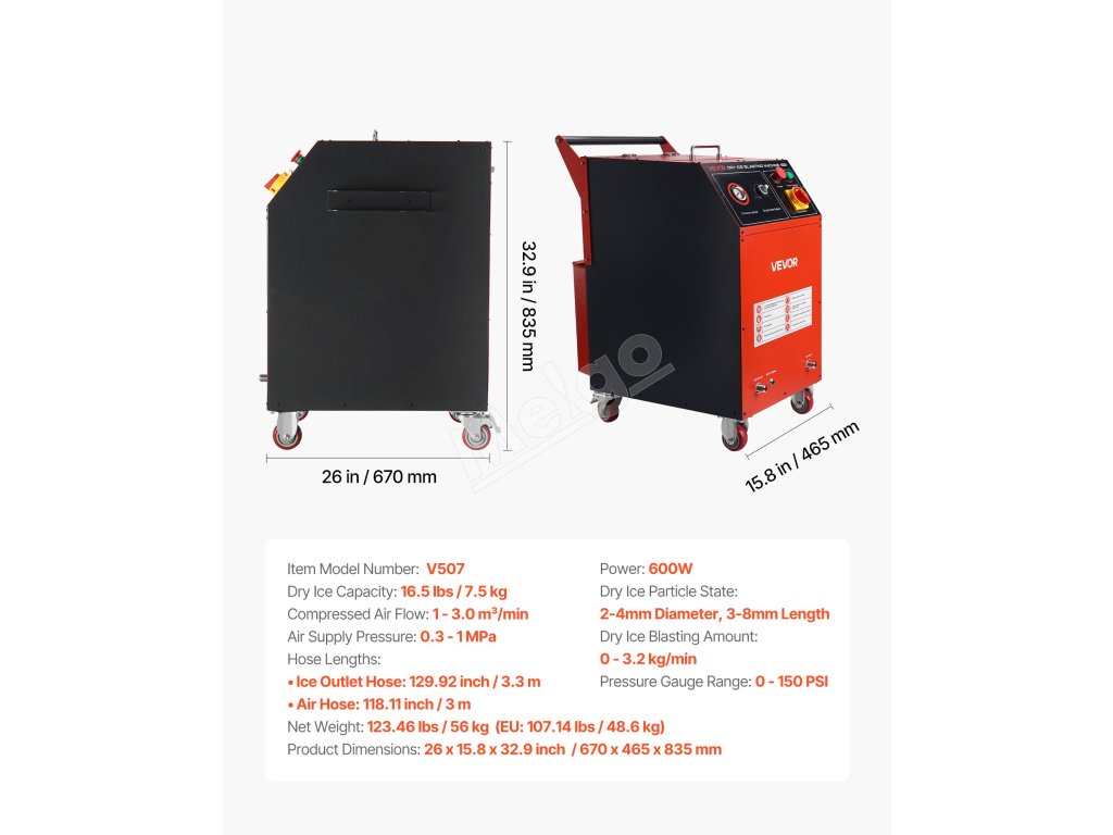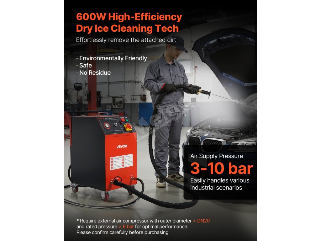 Vyskúšajte si bezpečné a efektívne čistenie automobilov pomocou zariadenia VEVOR na otryskávanie suchým ľadom. Je vybavený inteligentným ovládacím panelom, ktorý vám umožňuje presne nastaviť tlak striekania a objem suchého ľadu. Široko sa používa v oblasti elektrickej energie, odlievania, automobilového, námorného, lodného, leteckého a ďalších priemyselných odvetviach.
