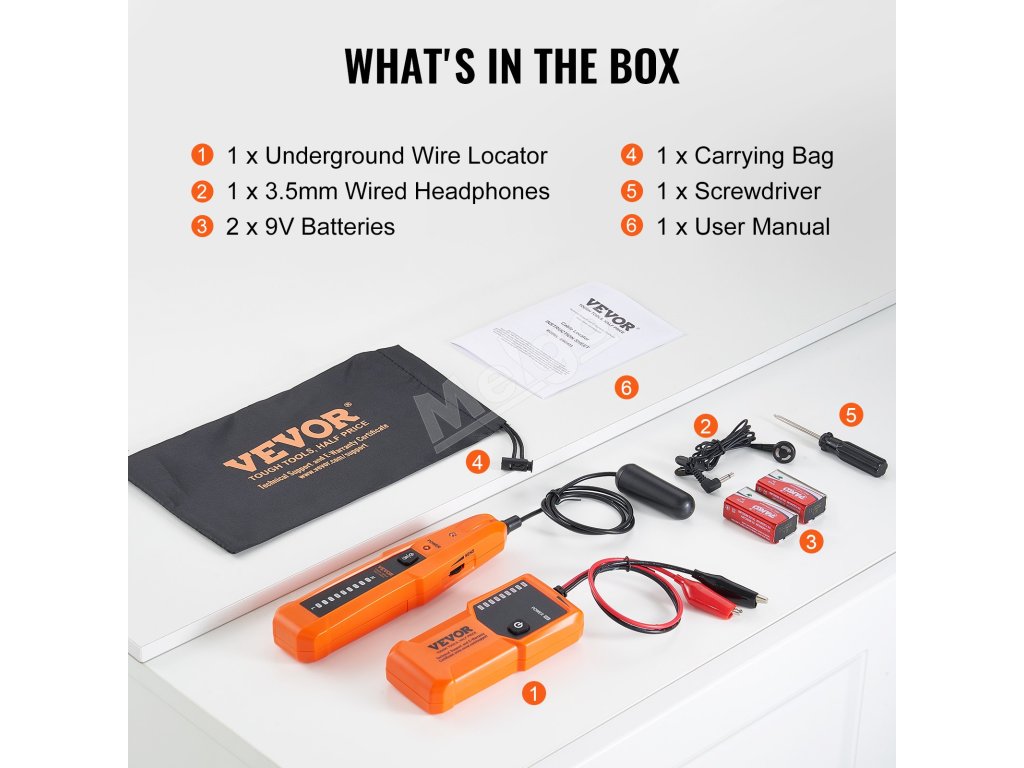 Náš vyhľadávač podzemných káblov sa dodáva so slúchadlami, ktoré zabezpečujú, že zvukové výzvy budete zreteľne počuť aj v hlučnom prostredí, čo umožňuje presné určenie miest prerušenia káblov. Okrem toho vám poskytujeme tašku na prenášanie a skrutkovač na jednoduché zvládnutie rôznych situácií.
