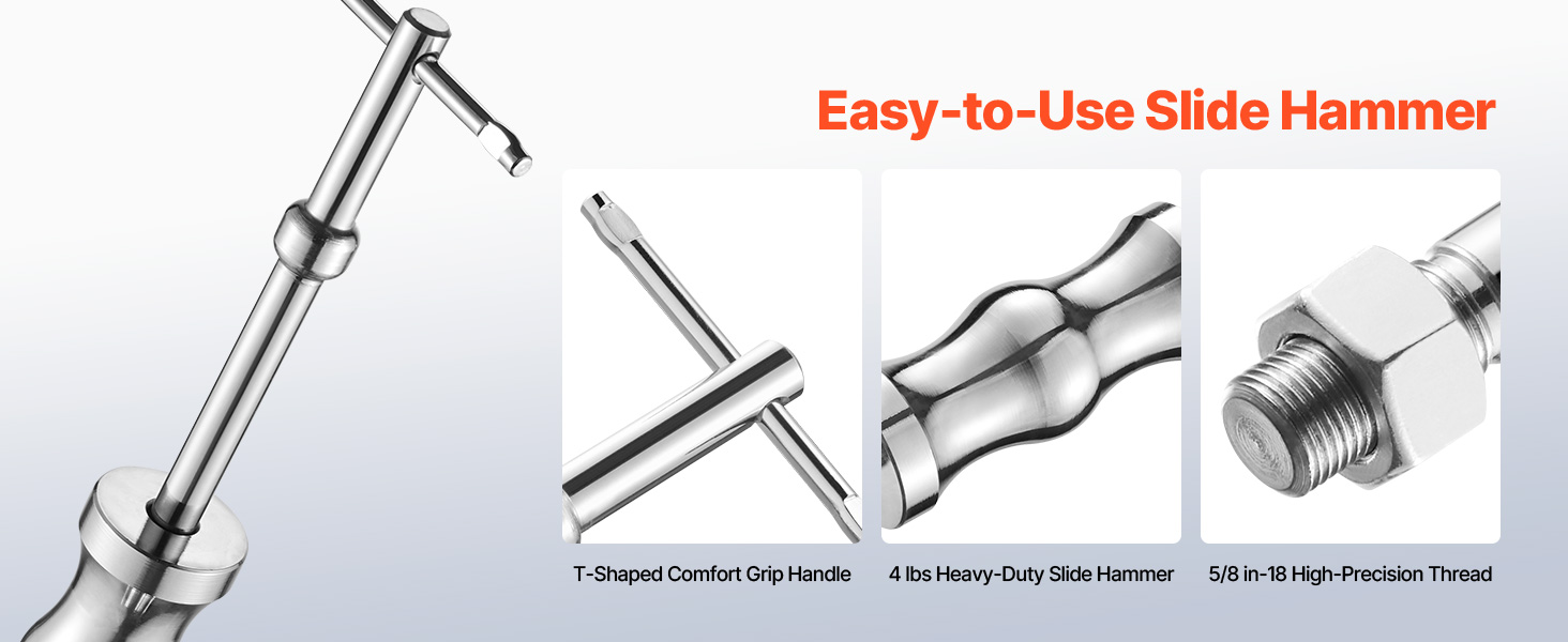 Táto súprava klzných kladív poskytuje silnú, konzistentnú ťahovú silu na jednoduché odstránenie nápravy. Pohodlná rukoväť pomáha znižovať únavu rúk počas náročných opráv.