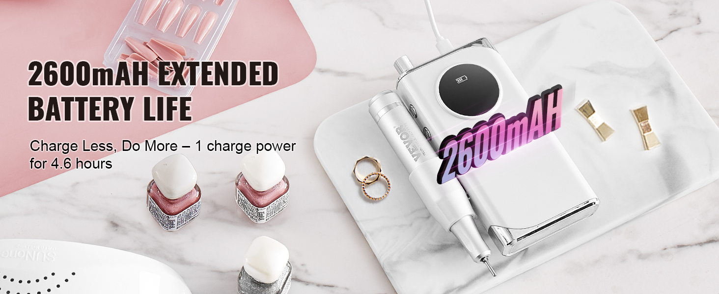 Rozlúčte sa s častým dobíjaním s našou akumulátorovou elektronickou pilníkom na nechty, ktorý je vybavený vysokokapacitnou batériou s kapacitou až 2600 mAh. Vychutnajte si až 4,6 hodiny nepretržitého používania na jedno nabitie, čím eliminujete nepríjemné prerušenia počas rutinnej starostlivosti o nechty.