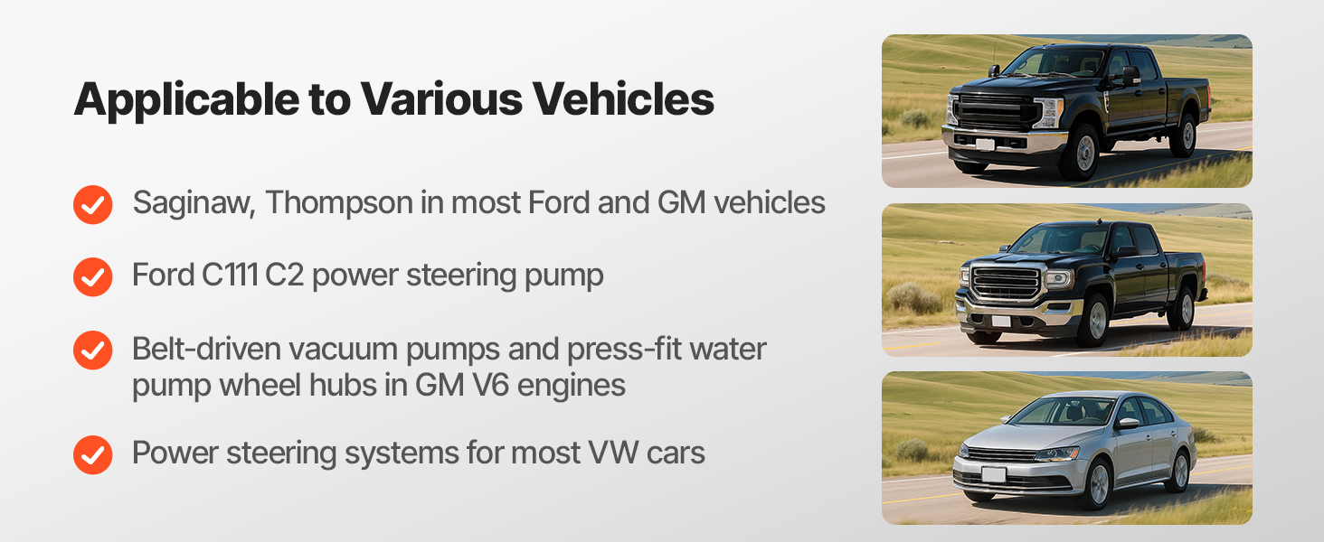 Súprava na demontáž remenice posilňovača riadenia poskytuje širokú kompatibilitu a je vhodná pre širokú škálu značiek a modelov vozidiel. Vyberte si podľa konkrétneho vozidla.