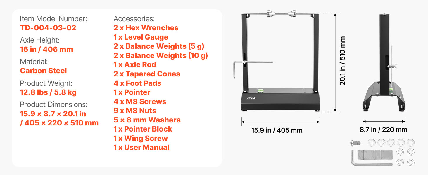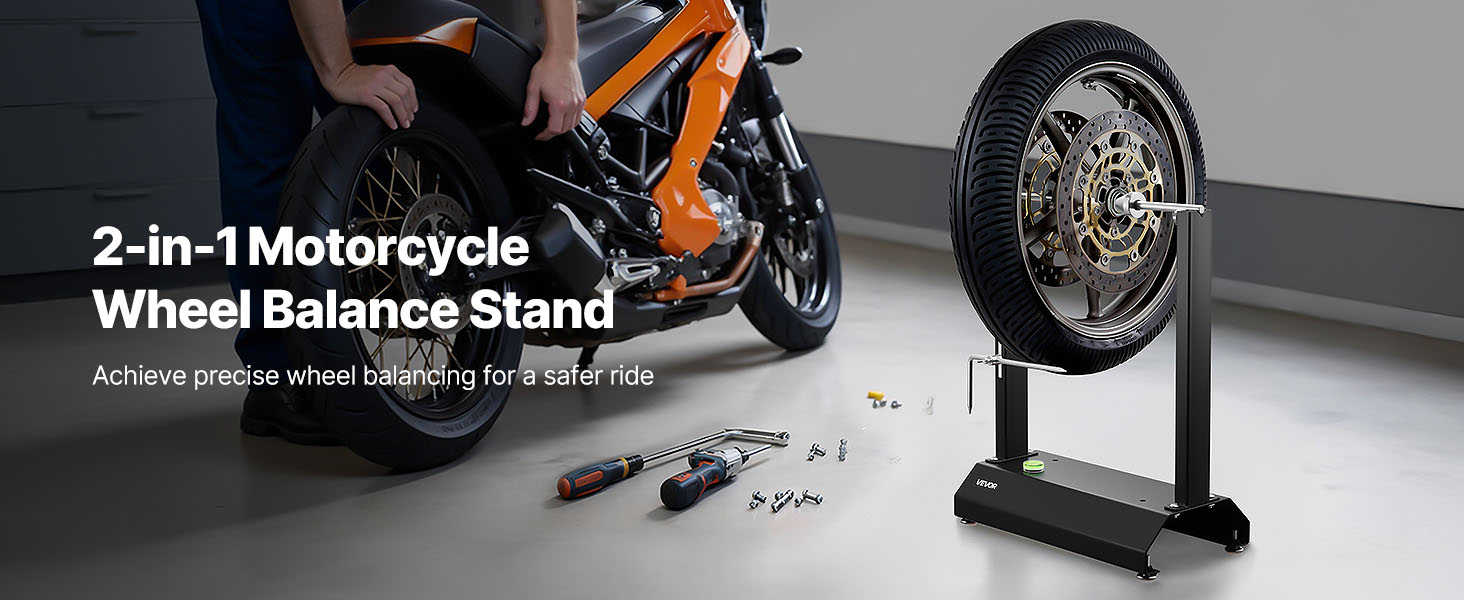 Táto univerzálna vyvažovačka kolies motocyklov využíva flexibilný ukazovateľ na zisťovanie odchýlok kolies a hladké ložiská na lokalizáciu ťažkých miest. Obsahuje 5 závaží s hmotnosťou 10 g na obnovenie rovnováhy ráfika, kým koleso nezostane v akejkoľvek polohe.