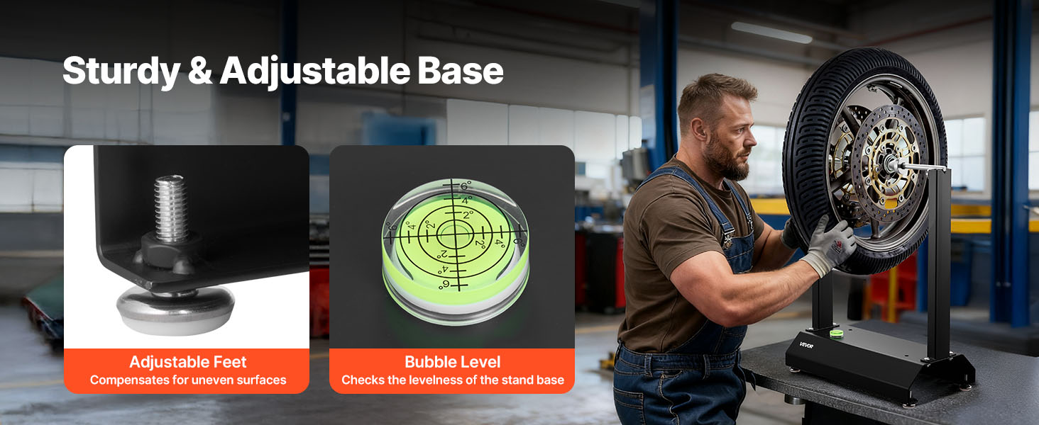Tento stojan na vyvažovanie pneumatík, vyrobený z odolnej uhlíkovej ocele, je vybavený štyrmi nastaviteľnými vyrovnávacími nožičkami pre stabilnú základňu. Bublinková vodováha pomáha kontrolovať zarovnanie, takže zakaždým dosiahnete výsledky na profesionálnej úrovni.