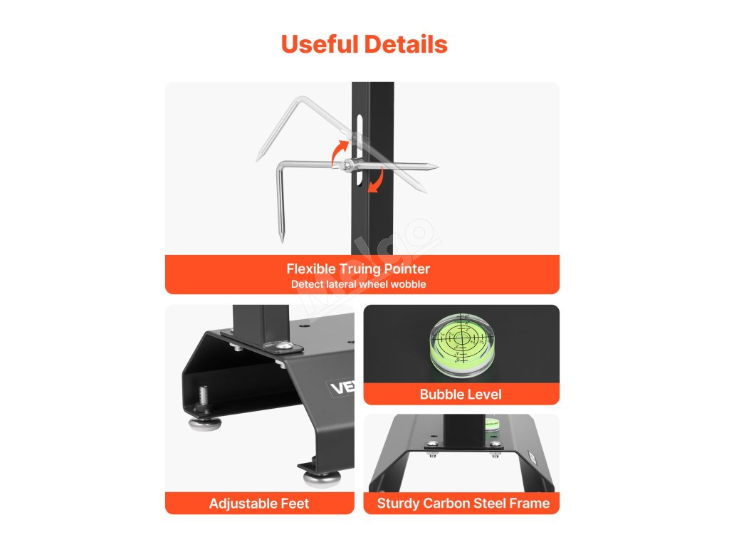 Tento stojan na vyvažovanie pneumatík, vyrobený z odolnej uhlíkovej ocele, je vybavený štyrmi nastaviteľnými vyrovnávacími nožičkami pre stabilnú základňu. Bublinková vodováha pomáha kontrolovať zarovnanie, takže zakaždým dosiahnete výsledky na profesionálnej úrovni.