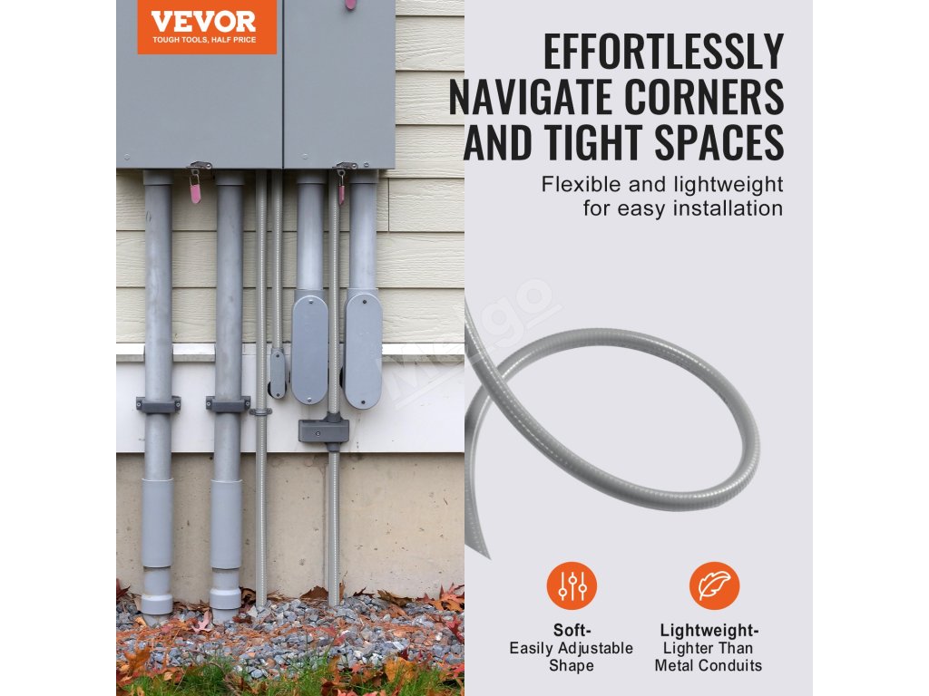 Naše PVC potrubie je ľahšie a flexibilnejšie ako kovové potrubia, ideálne pre stiesnené a zložité priestory. Je skonštruovaný pre dlhú životnosť a vynikajúco odoláva korózii spôsobenej kyselinami, kovovými pilinami a drsným prostredím. Vďaka stupňu vodotesnosti IP65 zaručuje vynikajúcu ochranu proti kvapalinám.