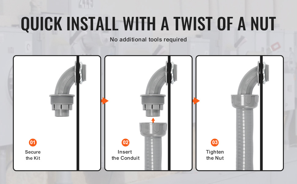 Naša súprava kvapalinotesného potrubia obsahuje 5 x priame konektory a 5 x 90-stupňové konektory. Na inštaláciu nie je potrebné žiadne ďalšie náradie - stačí nasunúť koncovky na potrubie a utiahnuť matice. Inštaláciu zvládnu bez problémov profesionáli aj domáci majstri.