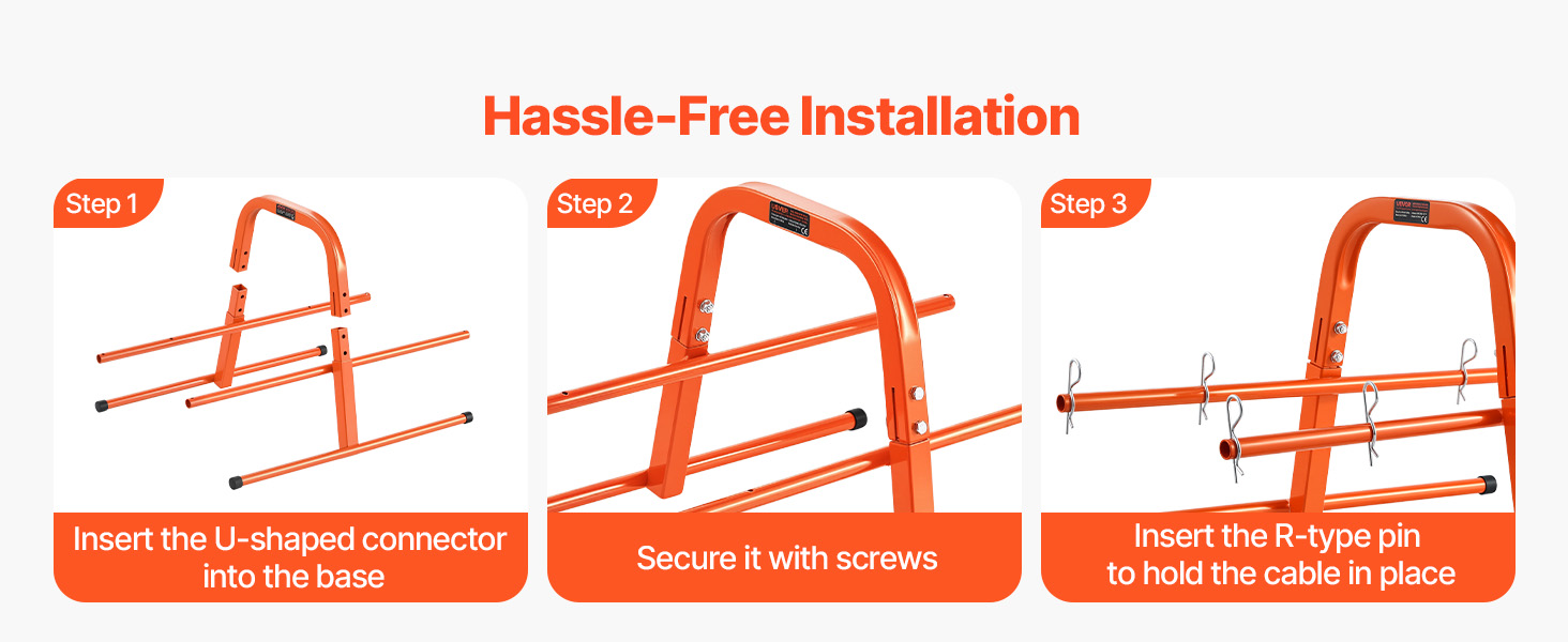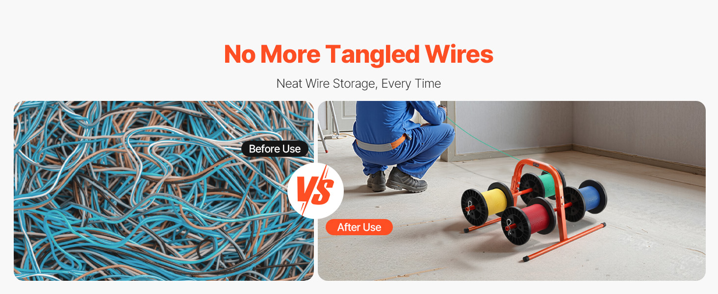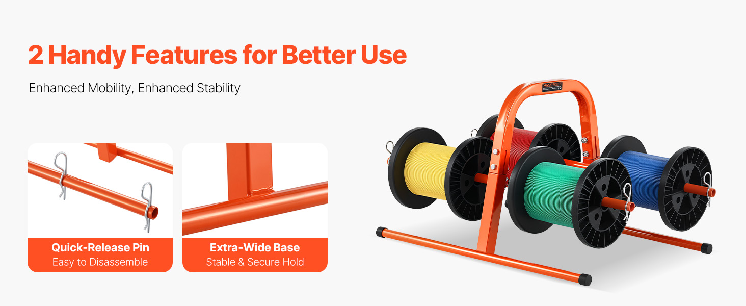Tento držiak na cievky s drôtom sa rýchlo a jednoducho montuje. Rovnako ľahko sa dá rozložiť a používať, čo vám umožní bez námahy nakladať, rozmiestňovať a vymieňať káble, takže vaša každodenná práca sa stane hračkou.