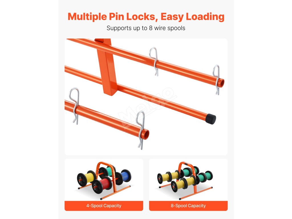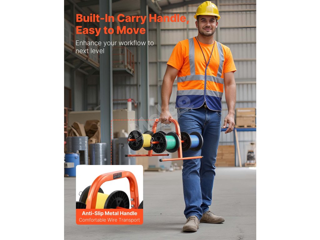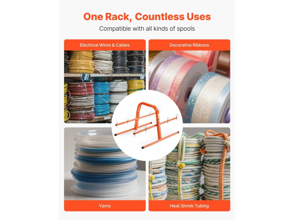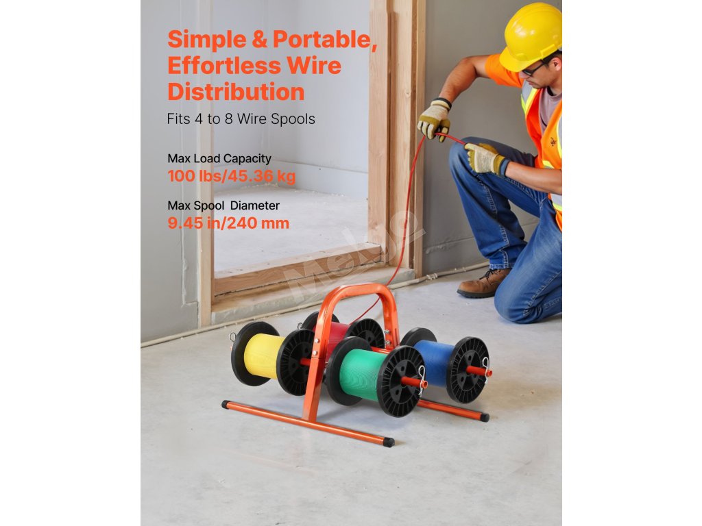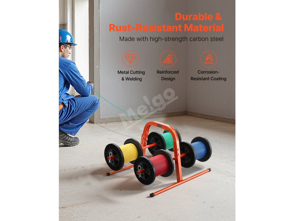 Tento ručný držiak je vyrobený z robustnej oceľovej rúrky Q195 a je konštruovaný tak, aby vydržal. Podporuje 4-8 cievok s maximálnym priemerom cievky 9,45 palca. S hmotnosťou 4,85 kg je ľahký a prenosný. Práškovo lakovaný povrch je odolný voči korózii, takže je ideálny na všestranné vedenie káblov v priemyselných odvetviach.