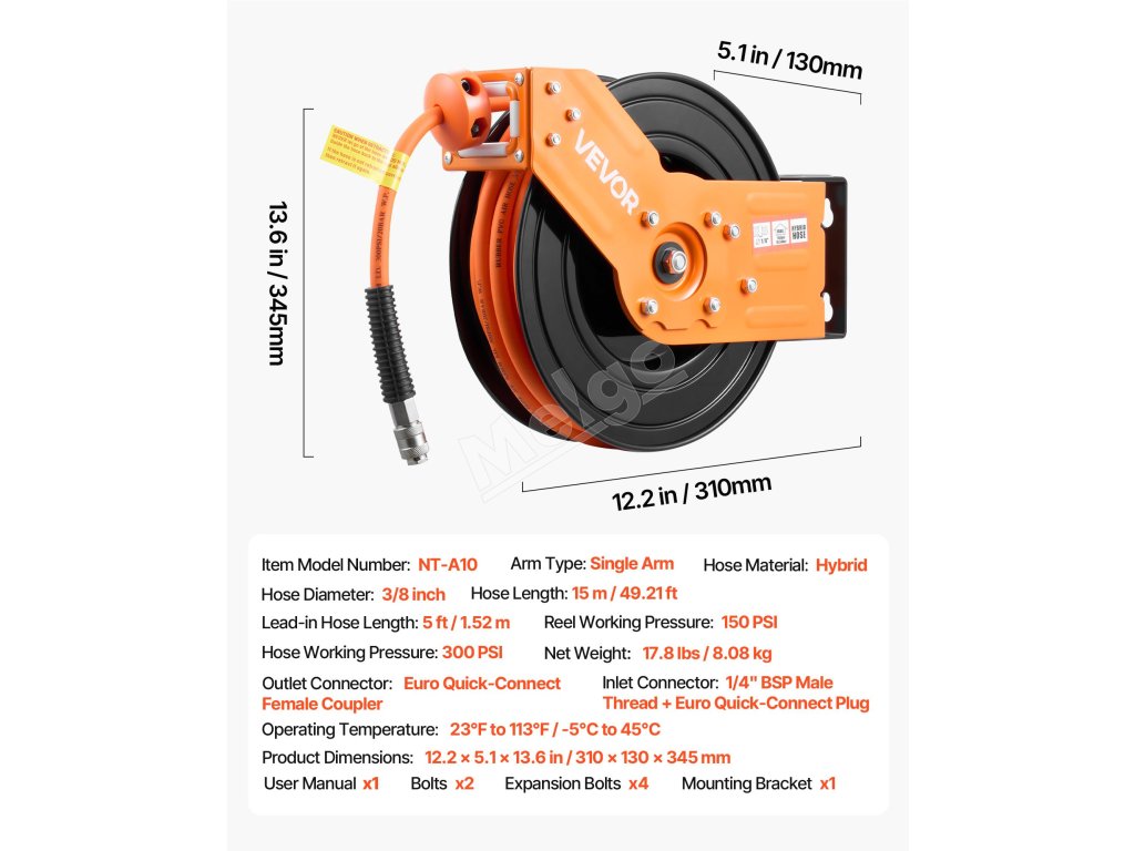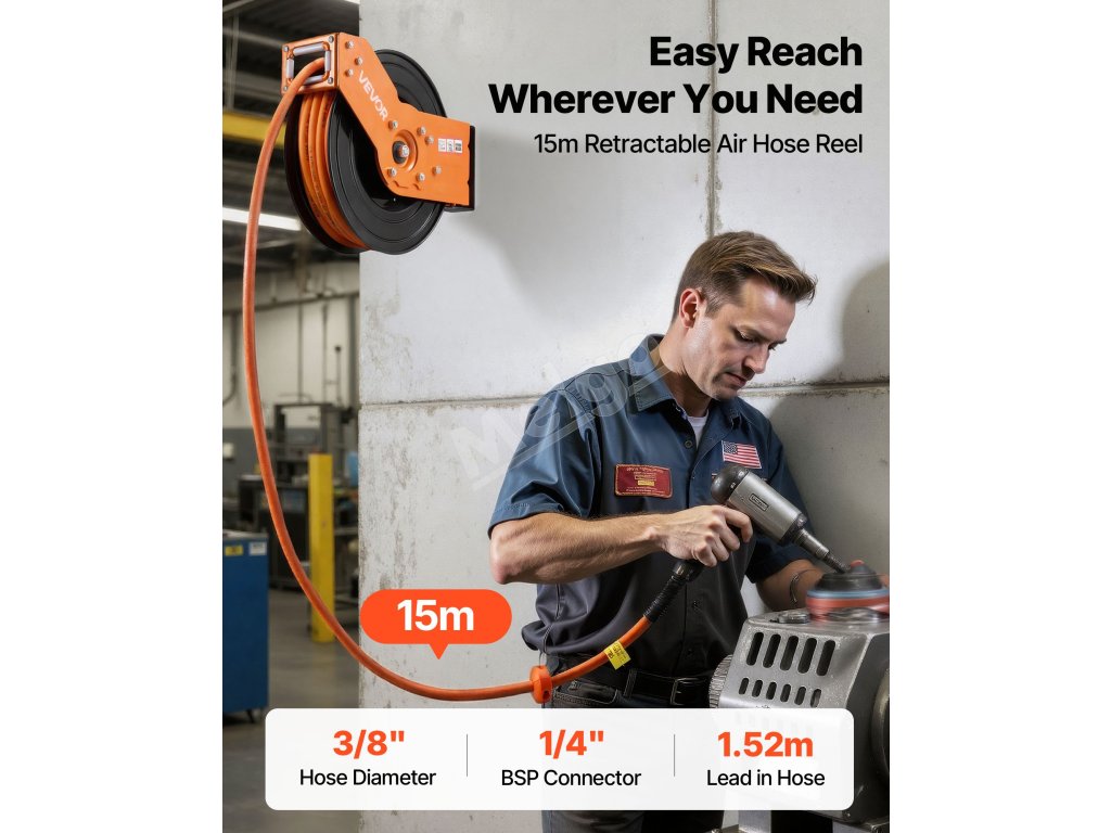 Navíjač vzduchovej hadice 15 m × 9.5 mm, 300 psi, 1.52 m, 180° montáž