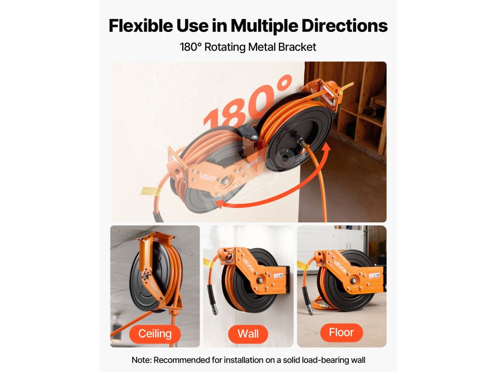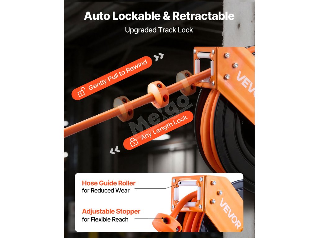 Náš navijak vzduchovej hadice s automatickým navíjaním je vybavený vstavaným uzamykacím mechanizmom, ktorý vám umožňuje ľahko nastaviť dĺžku hadice a bezpečne ju uzamknúť v požadovanej polohe.