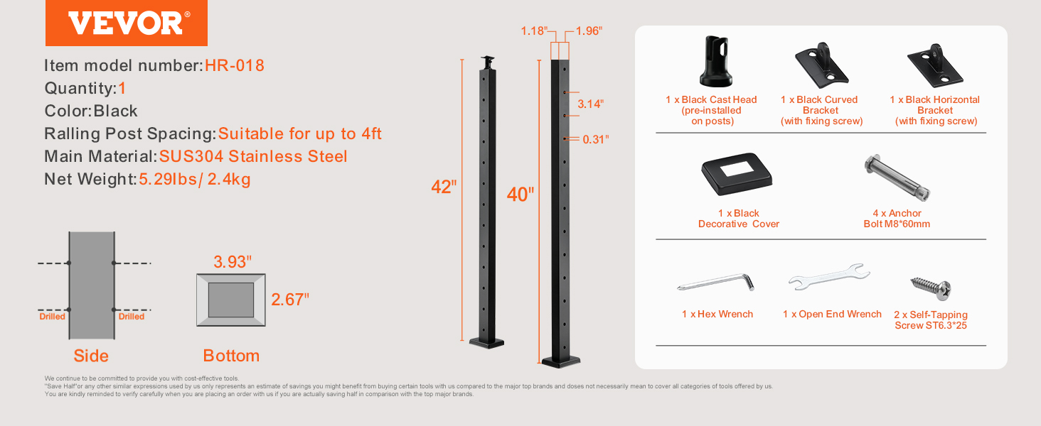 Náš 42-palcový stĺpik zábradlia s vodorovným otvorom má 0,31-palcové otvory s rozstupom 3,14" medzi jednotlivými otvormi, ktoré prešli 4-palcovým guľovým testom. Ideálne na zabezpečenie vašej rodiny na vodorovnom zábradlí na zemi alebo na terase, čím sa zaistí ich bezpečnosť.