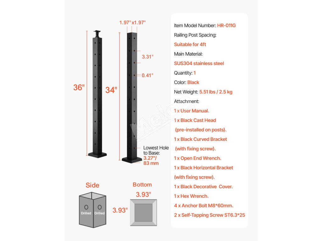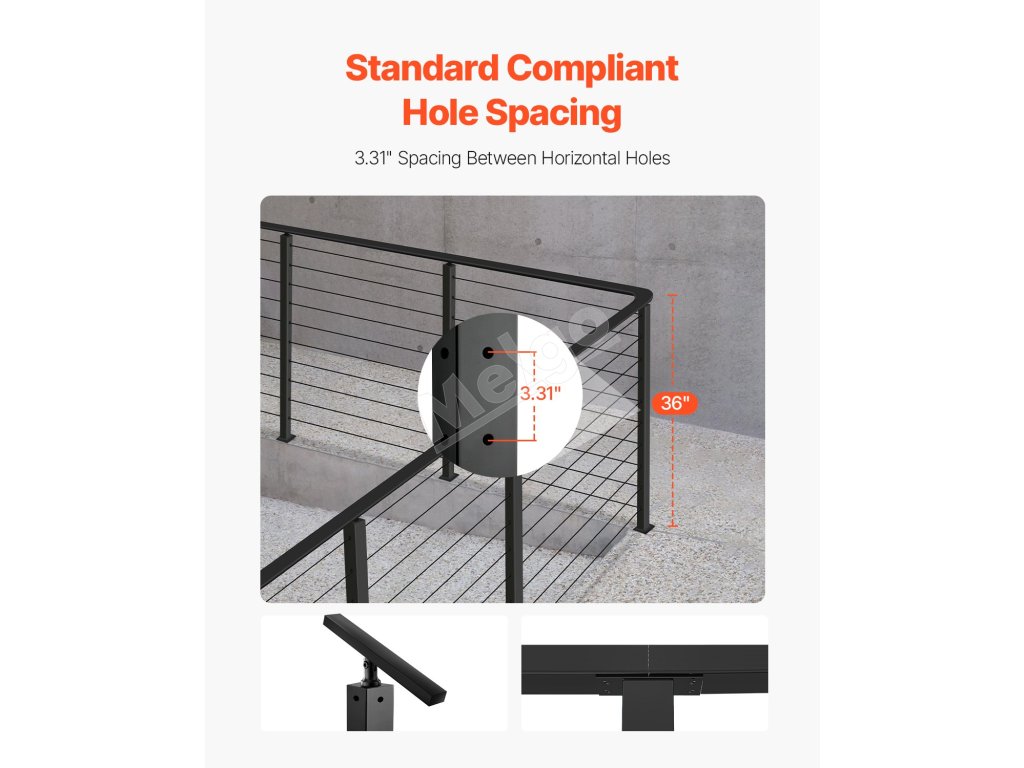 Toto schodiskové zábradlie sa dodáva s predvŕtanými otvormi, vďaka čomu nie je potrebné dodatočné vŕtanie. Umožňuje jednoduché nastavenie uhla a polohy počas inštalácie a obsahuje všetko potrebné príslušenstvo, čo šetrí prácu.