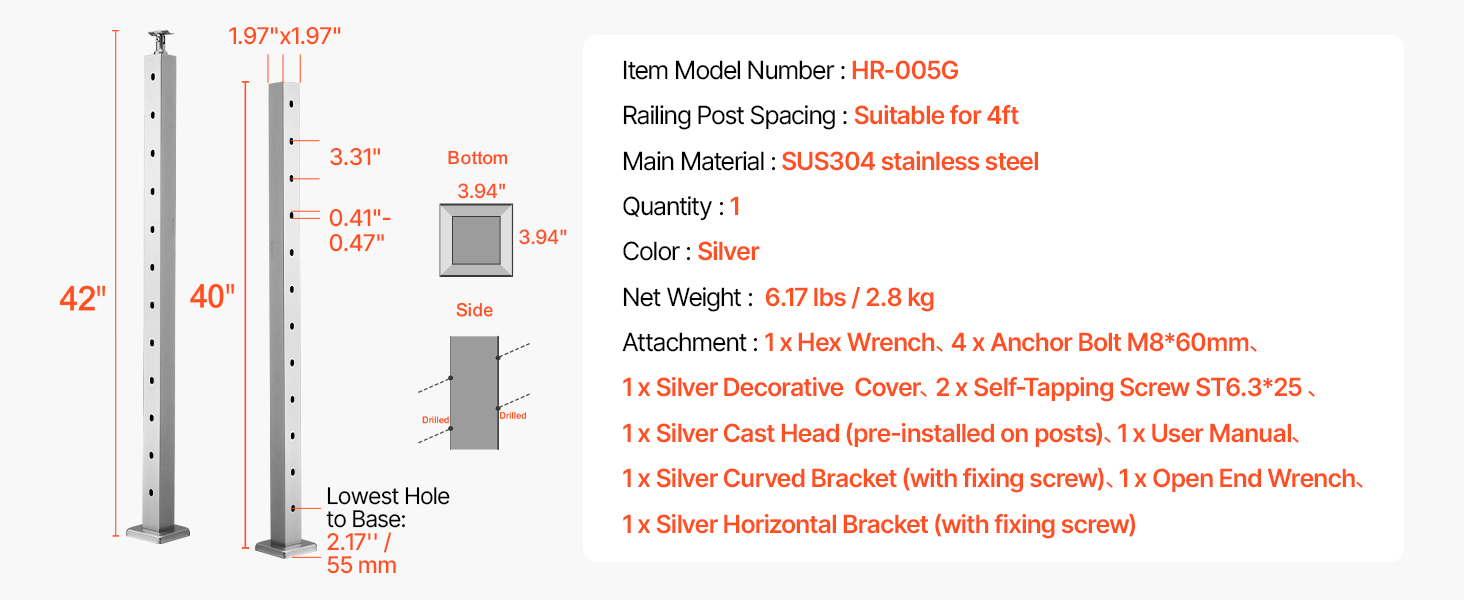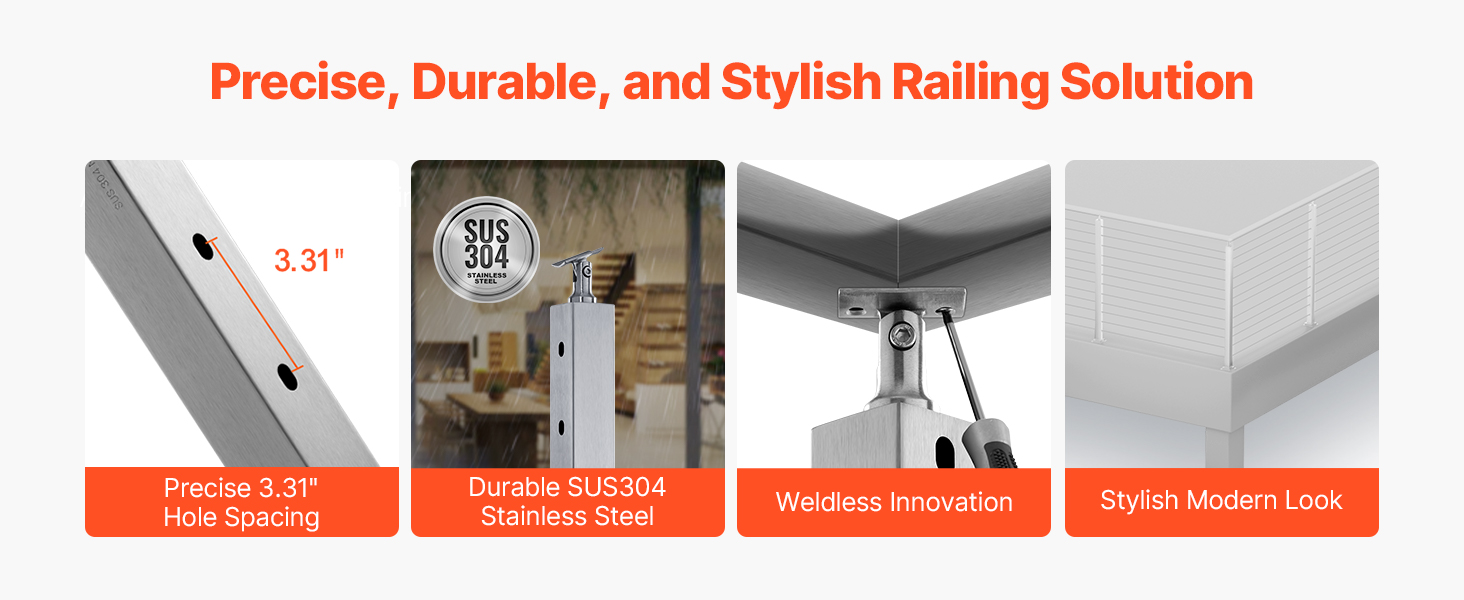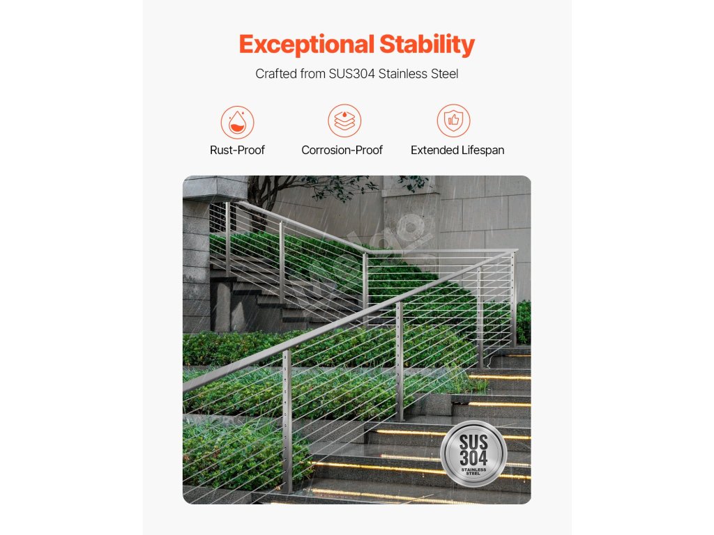 Objavte nový štandard stĺpikov zábradlia! Náš stĺpik zábradlia s káblami je vyrobený z odolnej nehrdzavejúcej ocele SUS304 a ponúka pevnosť aj štýl. Jednoducho sa inštaluje vďaka predvŕtaným otvorom a priloženému príslušenstvu a je ideálny na zabezpečenie paluby, zábradlia a ďalších prvkov, pričom spĺňa všetky požiadavky predpisov.