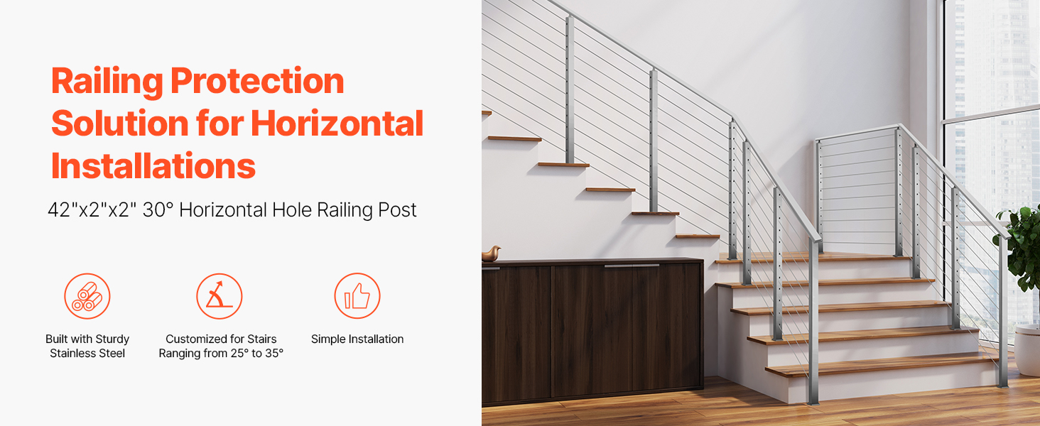 Stĺpik lanového zábradlia 42×2×2 inch, nerez, 30° predvŕtané otvory