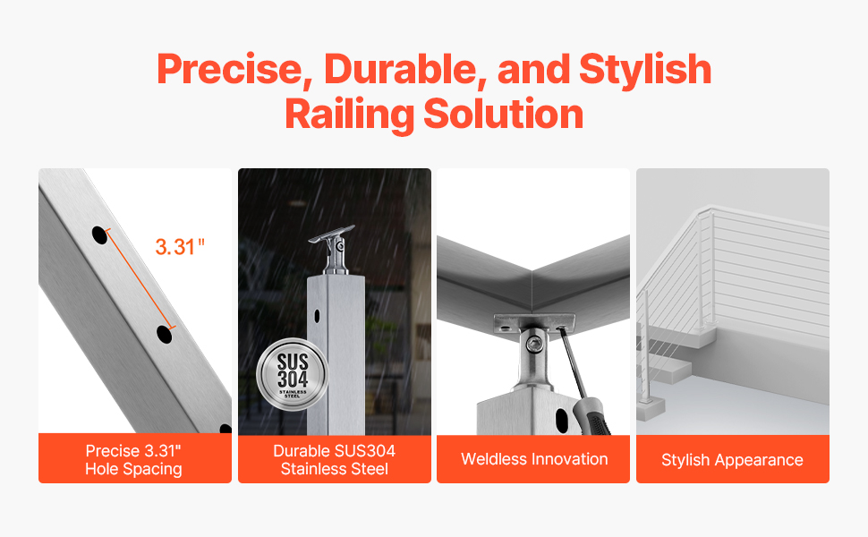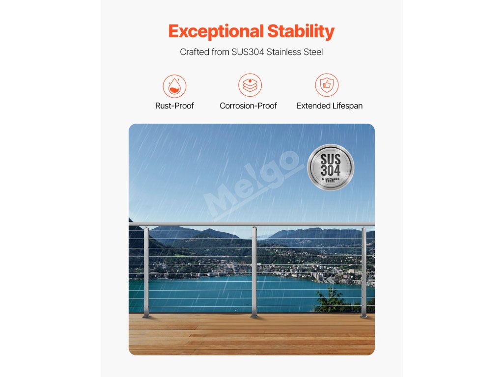 Objavte nový štandard stĺpikov zábradlia! Náš stĺpik zábradlia s káblami je vyrobený z odolnej nehrdzavejúcej ocele SUS304 a ponúka pevnosť aj štýl. Jednoducho sa inštaluje vďaka predvŕtaným otvorom a priloženému príslušenstvu a je ideálny na zabezpečenie paluby, zábradlia a ďalších prvkov, pričom spĺňa všetky požiadavky predpisov.