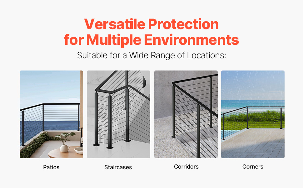 Táto súprava palubového zábradlia s otvormi typu L je kompatibilná s rohmi a zákrutami, takže je ideálna pre schody, terasy, chodby a iné rohové aplikácie.