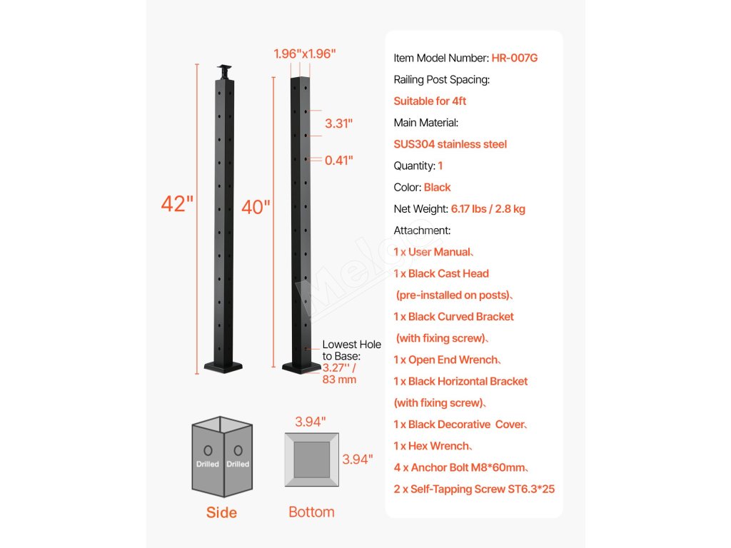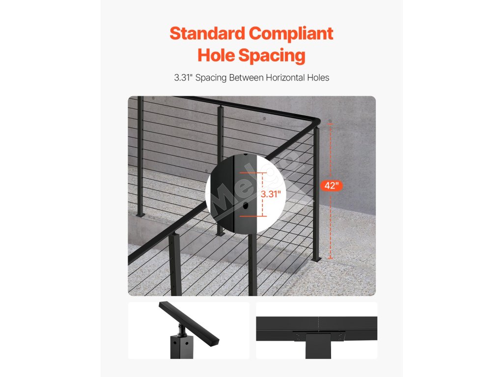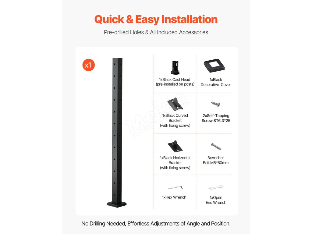 Toto schodiskové zábradlie sa dodáva s predvŕtanými otvormi, vďaka čomu nie je potrebné dodatočné vŕtanie. Umožňuje jednoduché nastavenie uhla a polohy počas inštalácie a obsahuje všetko potrebné príslušenstvo, čo šetrí prácu.