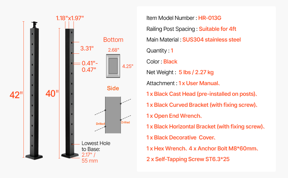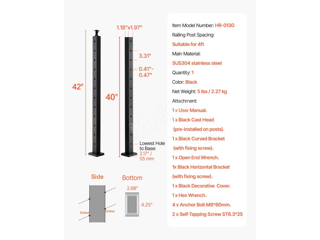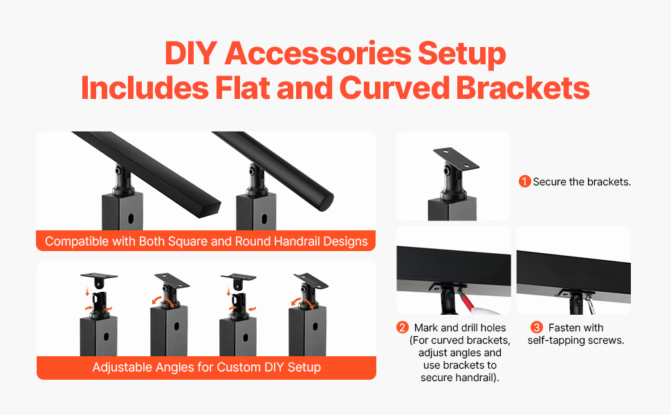Toto schodiskové zábradlie sa dodáva s predvŕtanými otvormi, vďaka čomu nie je potrebné ďalšie vŕtanie. Umožňuje jednoduché nastavenie uhla a polohy počas inštalácie a obsahuje všetko potrebné príslušenstvo, čo šetrí prácu.