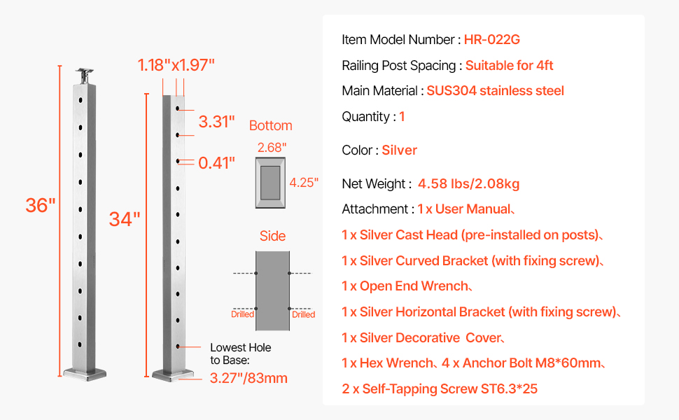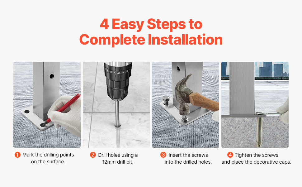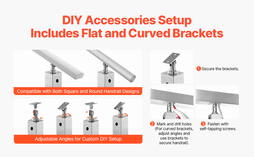 Toto schodiskové zábradlie sa dodáva s predvŕtanými otvormi, vďaka čomu nie je potrebné ďalšie vŕtanie. Umožňuje jednoduché nastavenie uhla a polohy počas inštalácie a obsahuje všetko potrebné príslušenstvo, čo šetrí prácu.