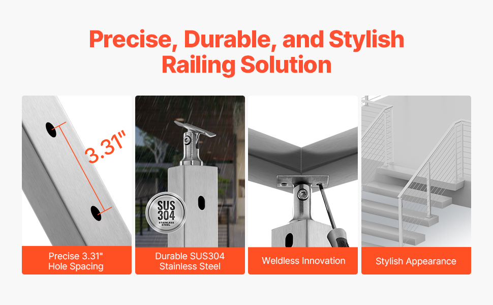 Naša súprava káblového zábradlia obsahuje vodorovné a zakrivené podpery, ktoré sú kompatibilné so zábradlím zo štvorcových a okrúhlych rúrok. Umožňuje vytvoriť si uhly zábradlia na mieru podľa vlastného uváženia.