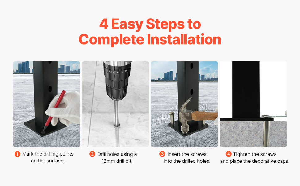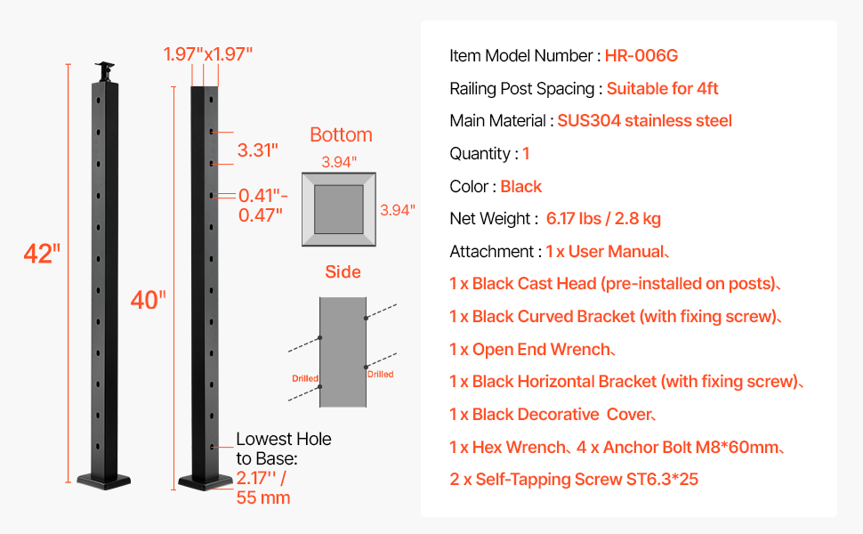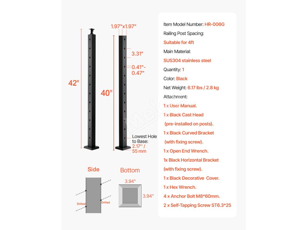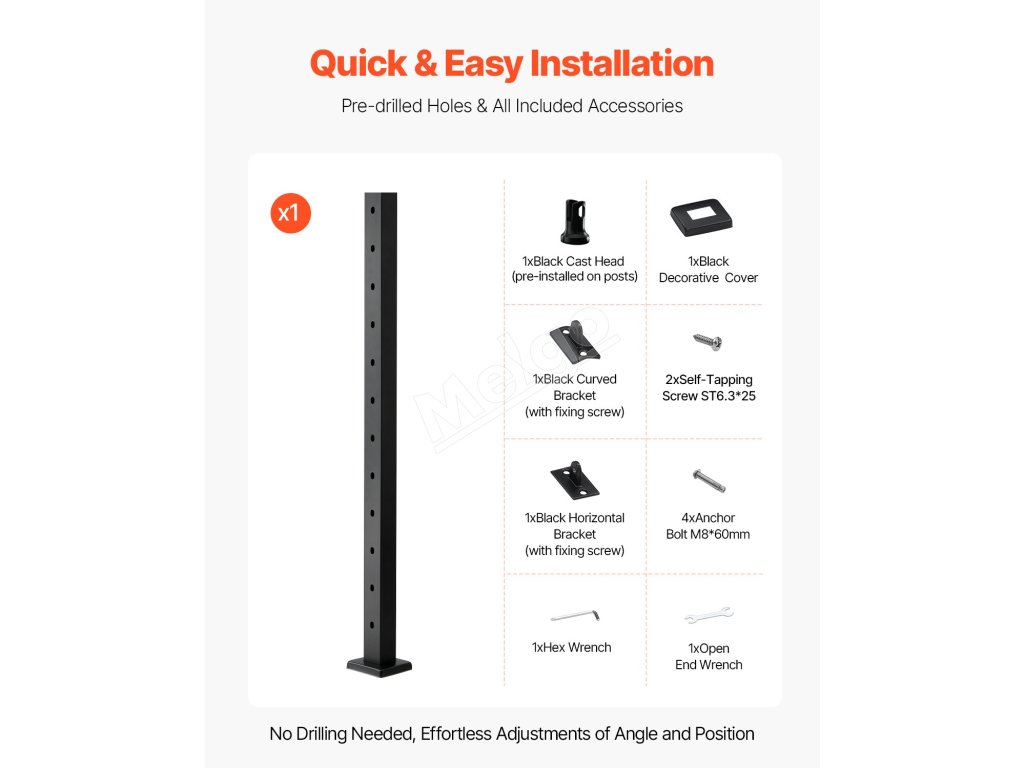 Toto schodiskové zábradlie sa dodáva s predvŕtanými otvormi, vďaka čomu nie je potrebné ďalšie vŕtanie. Umožňuje jednoduché nastavenie uhla a polohy počas inštalácie a obsahuje všetko potrebné príslušenstvo, čo šetrí prácu.