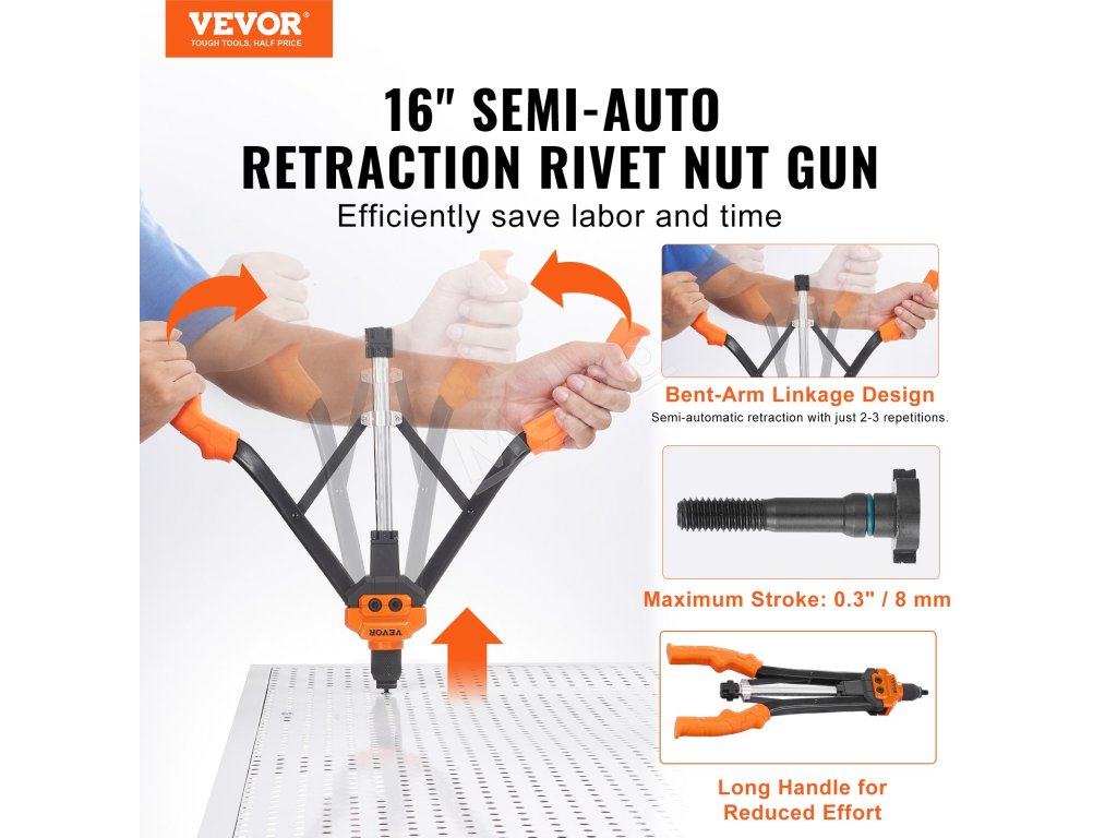 Nástroj na nýtovacie matice 40,6 cm, 186 ks matíc, 13 hlavíc m3–m12