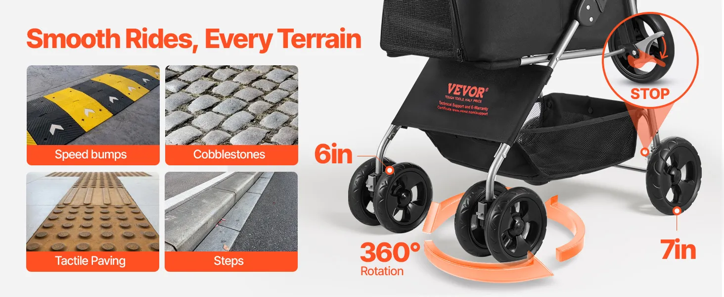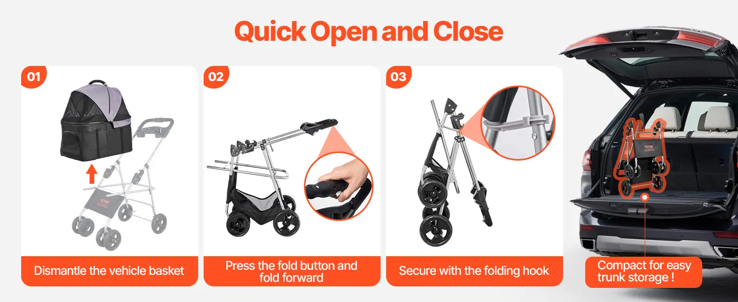 Zažite maximálne pohodlie s týmto kočíkom pre domácich miláčikov! Je vyrobený z tkaniny 600D Oxford, unesie až 35 kg a má 3 vstupy s priedušnými sieťovanými oknami. Zložte ho za pár sekúnd, kompaktne ho uložte a užite si plynulú jazdu na flexibilných kolieskach. Ideálny pre starnúce rodiny, rodiny so zranenými alebo viacerými domácimi zvieratami.
